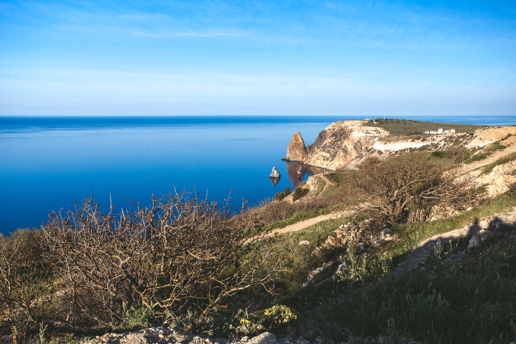 Живописный мыс Фиолент занимает часть Гераклейского полуострова. Он находится на юго-западном берегу Крыма, на пути из Севастополя в Балаклаву, в 15 км от городского центра. От Фиолента начинаются горные цепи Главной гряды Крымских гор.