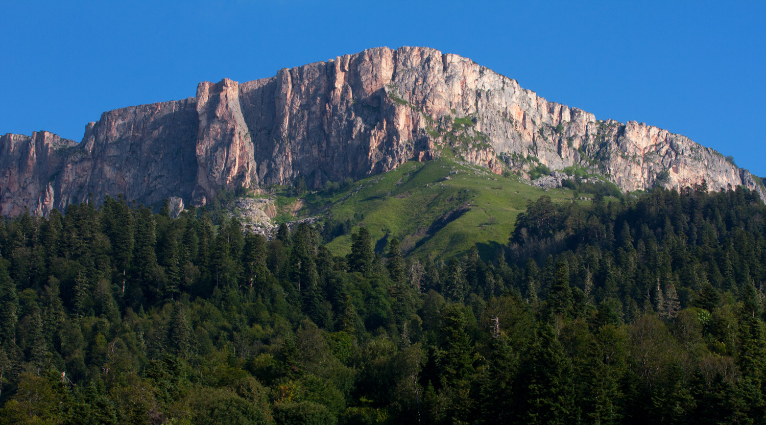 Самой высокой точкой хребта Каменное море является скала Нагой-Кош. И именно в этой точке хребет поворачивает и идет вокруг плато Лаго-Наки на протяжении 100 метров. Пейзажи в этом месте особенно красивые в ясную погоду, а снежные вершины так близки, что можно почувствовать их свежесть. От сюда можно увидеть поселок Гузерипль и крыши города Майкопа и Свято-Михайловского монастыря.