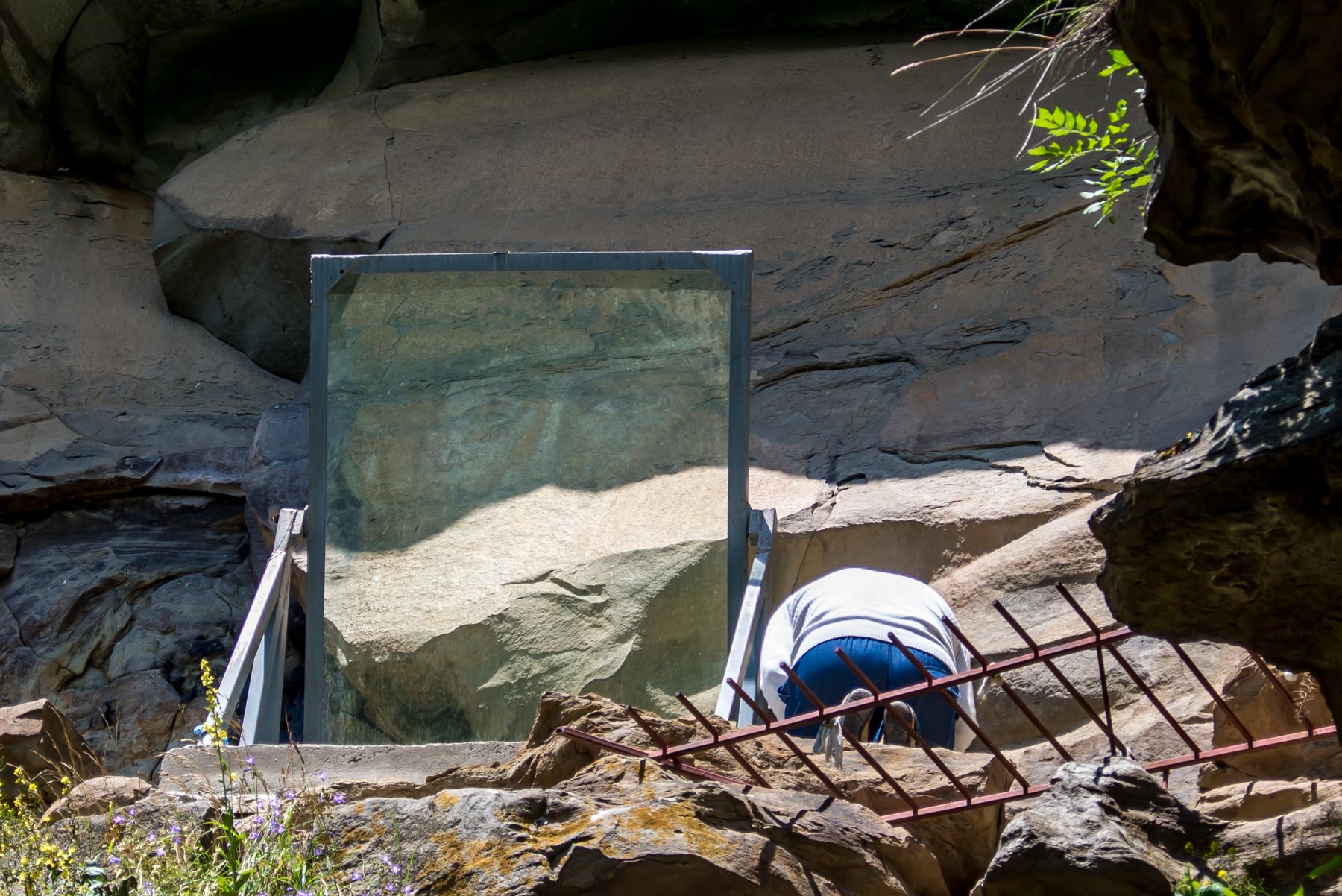 На площадке перед иконой всегда толпится много людей. Осматривать картину неудобно – находится она довольно высоко, а бледные краски мешают рассмотреть детали. Раньше можно было подойти к иконе вплотную, но теперь проход наверх закрыли, а все доступные лазейки обтянули колючей проволокой. Однако некоторые особо страждущие все-таки находятся в себе силы пробраться к иконе, несмотря на препятствия.