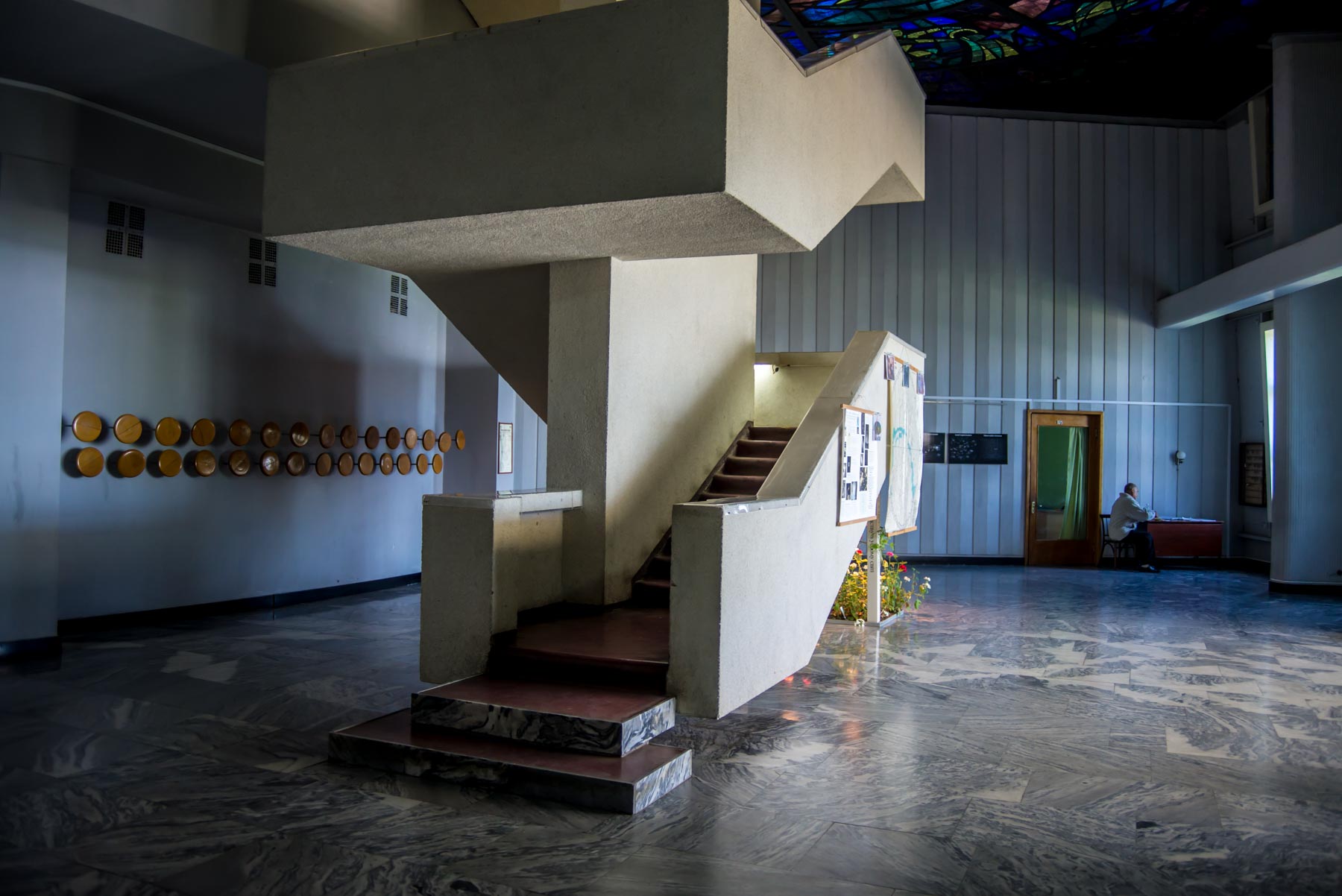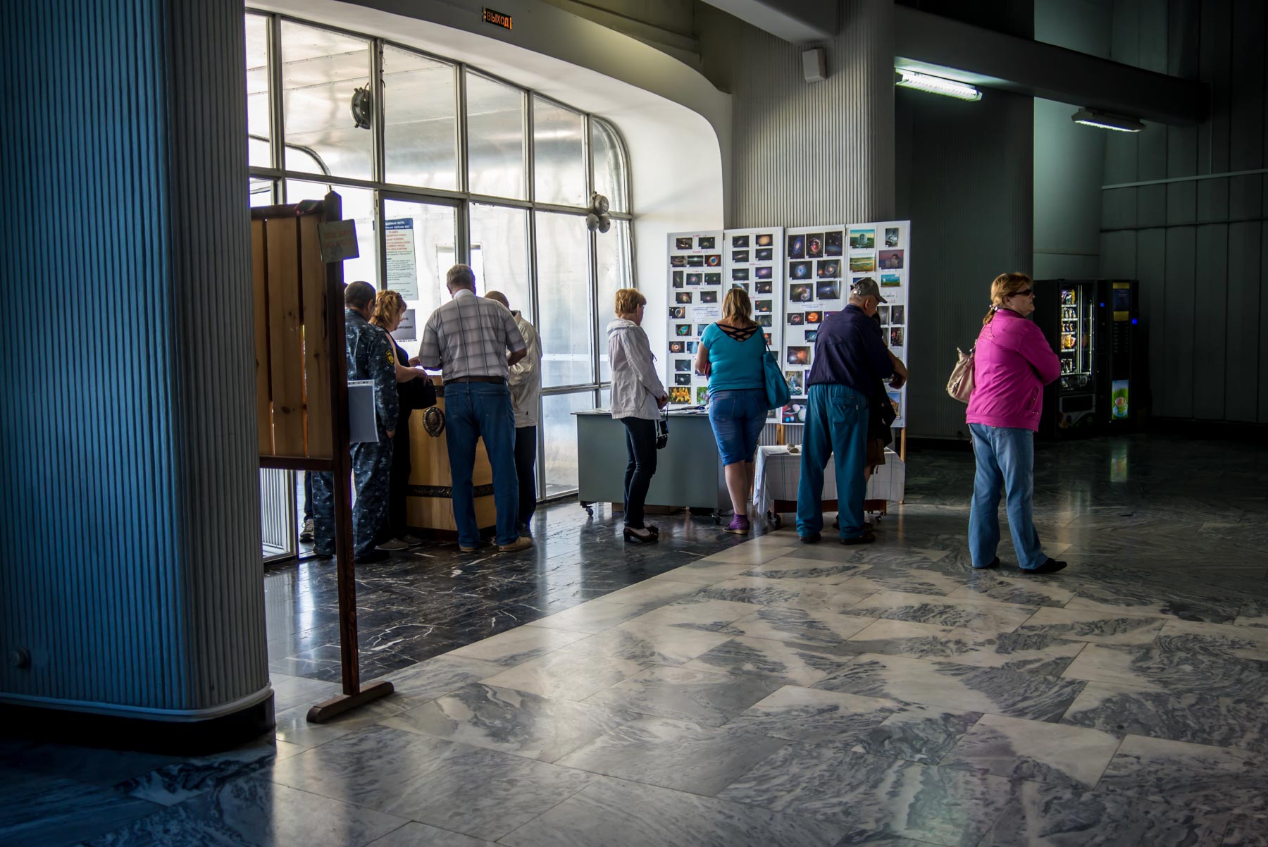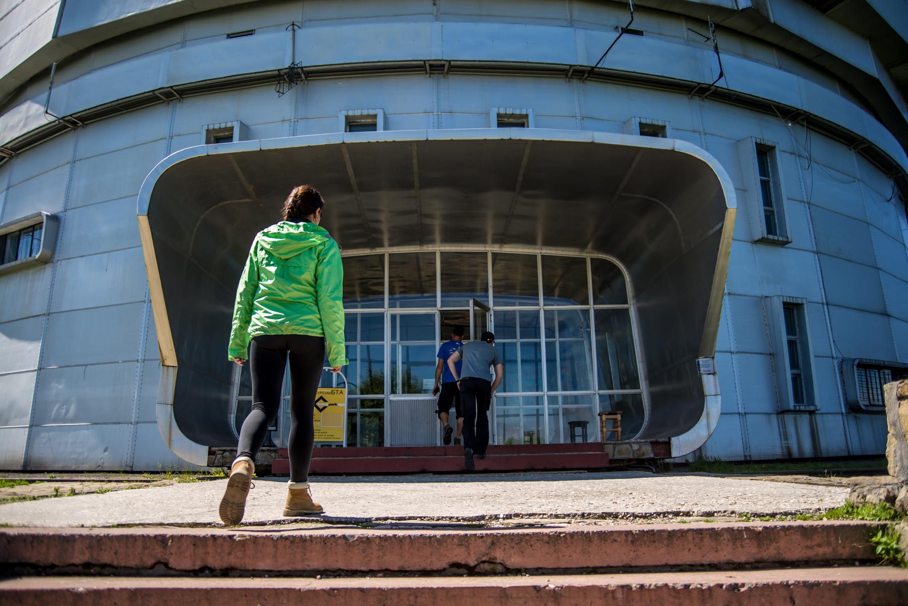 Оставляем машину на парковке перед входом, поднимаемся по лестнице внутрь за билетами.