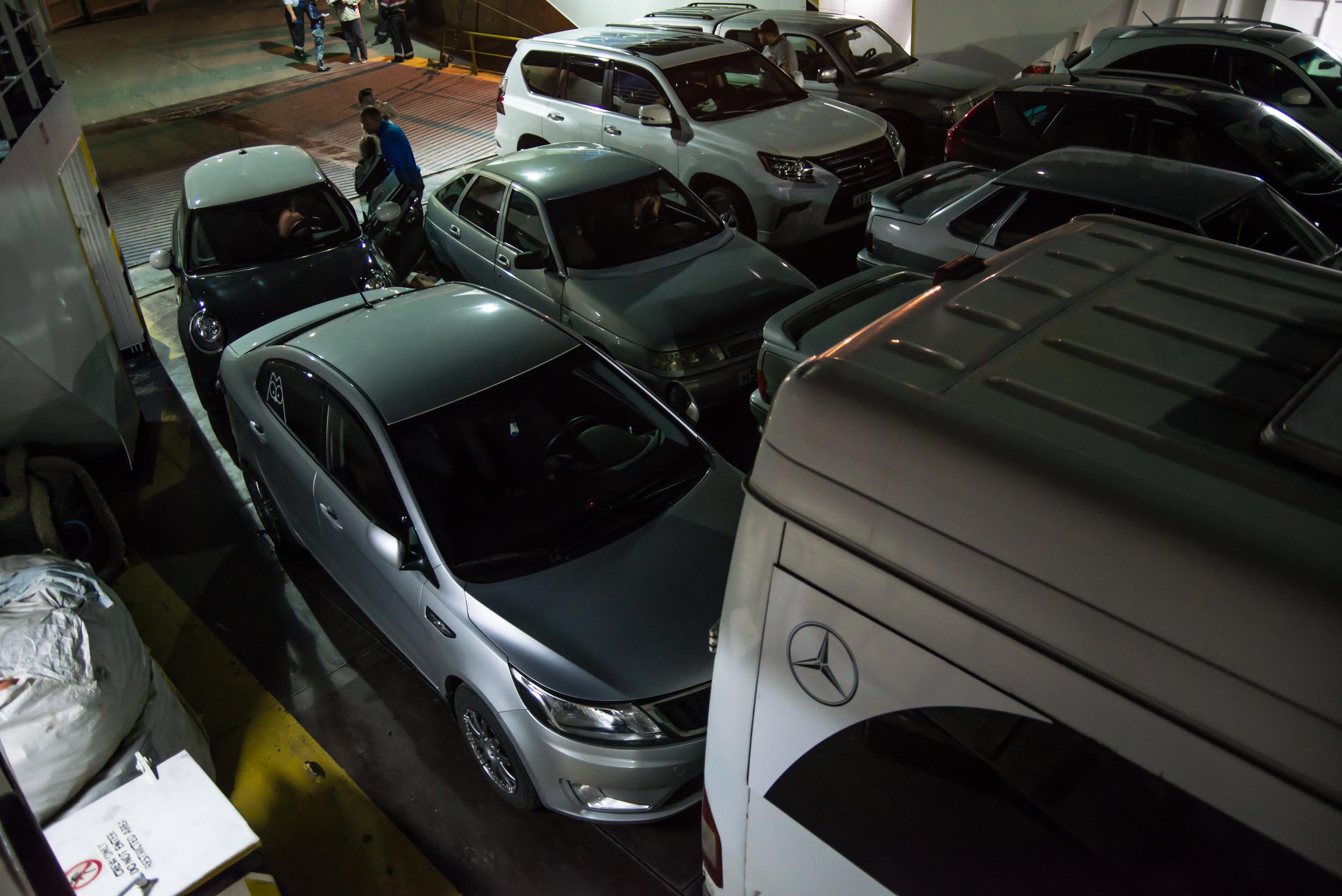 В итоге к очереди на посадку в морской транспорт мы подъехали где-то в 9.30. Оставалось ждать еще 1,5 часа, но оператор переправы пропустил нас раньше времени, сославшись на то, что сейчас машин не много, “но в сезон будете ждать своей очереди”.