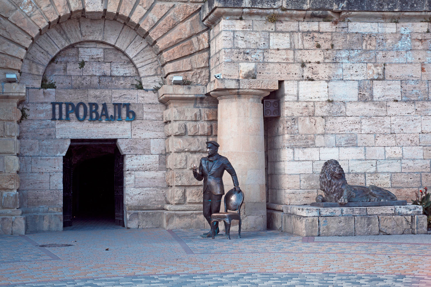 Рядом со входом в Провал установлена скульптура Остапа Бендера со стулом. Согласно сюжету романа Ильфа и Петрова «12 стульев», главный герой собирал деньги за проход в Провал, тогда как на самом деле он был бесплатным. Ходит легенда, что после выхода книги в свет, на один год вход в пещеру действительно стал платным, но затем власти города отменили сборы.