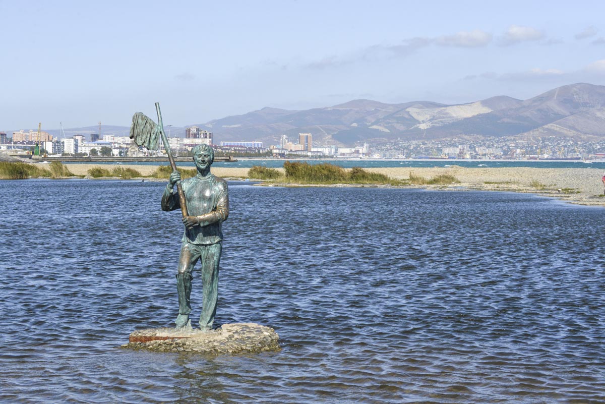 Мемориал был установлен в Новороссийске 1 ноября 2010 года. Он отлит из бронзы и выполнен в полный рост героя фильма. Здесь запечатлен момент, когда актер, держа в руках палку с флагом (трусами Лелика), оказавшись на незнакомом берегу, наблюдает, как мальчик идет по воде. Ростовский скульптор Дмитрий Лангин поставил перед собой цель не создать в Новороссийске памятник Миронову, а именно воплотить в скульптуре образ сыгранного им героя.