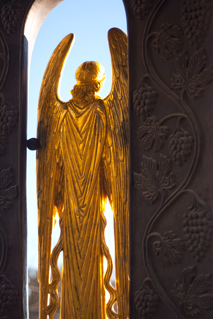Расположен памятник Святой Великомученице Екатерине на пересечении улиц Красной и Бабушкина. Надпись на близлежайшем торговом центре подтвердит, что, таки да, это – центр города. Подъехать сюда можно на троллейбусе, хотя по центральной аллее улицы Красной лучше гулять пешком, держа ориентир на Александровскую триумфальную арку.