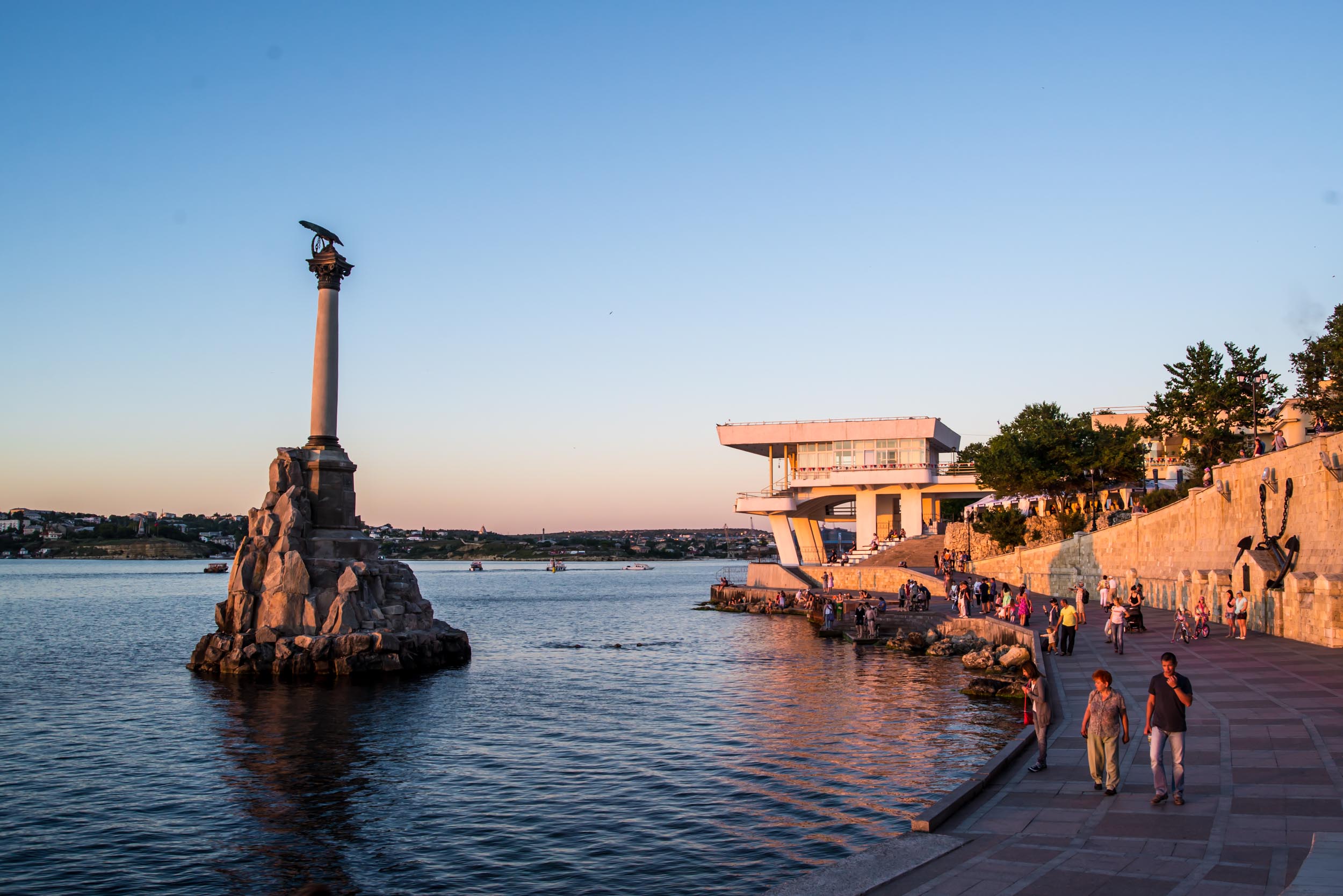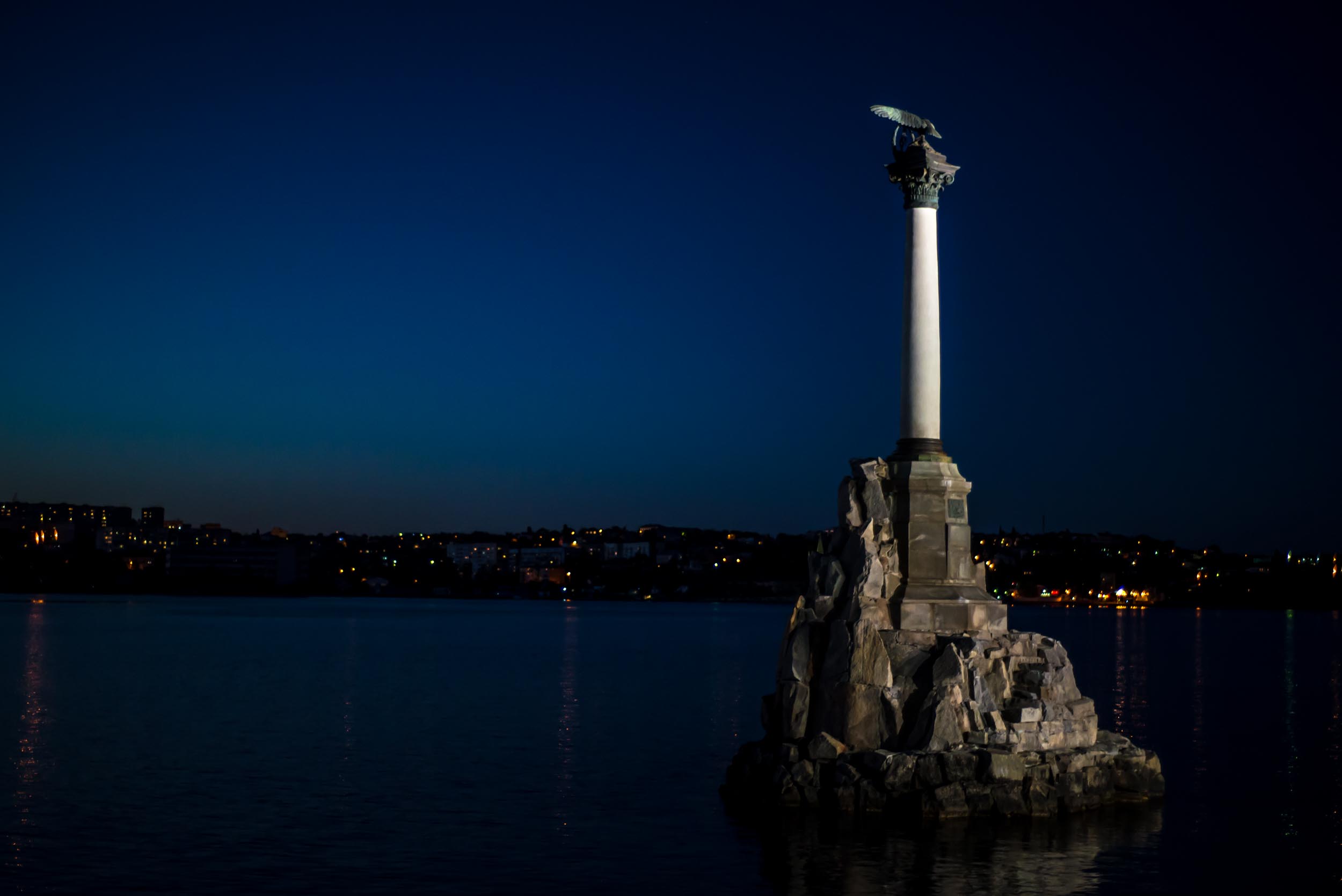 В 1905 году в бухте Севастополя был открыт памятник затопленным кораблям, который стал визитной карточкой города. Памятник представляет собой искусственную гранитную скалу, которая выступает из моря, на ней установлена белая колонна, на которой красуется статуя орла. Каждый, кто прогуливается по набережной Николаевского мыса, видит этот памятник.