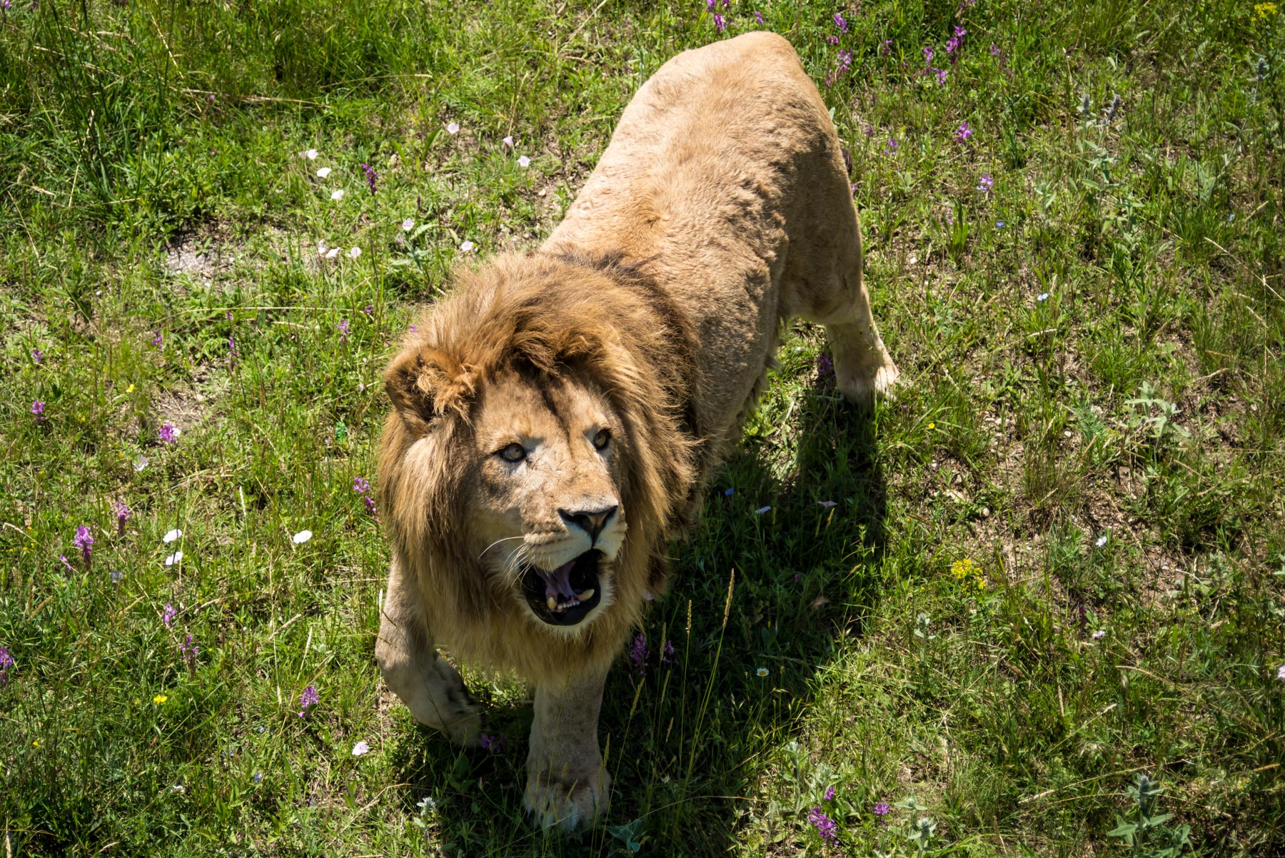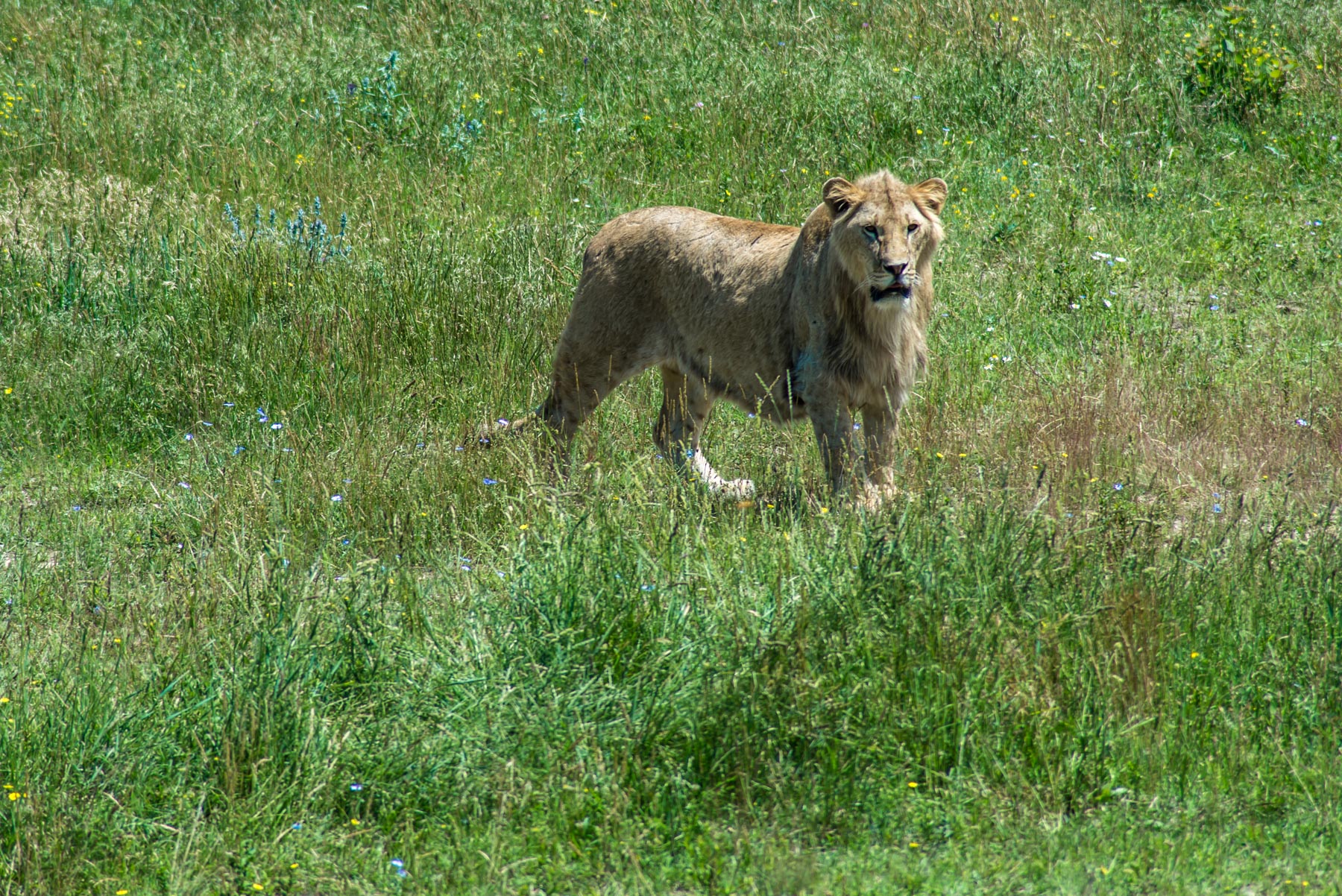 Длина тела льва достигает в длину чуть менее 2,5 метров, без учета хвоста. Средняя масса – 200 кг. В дикой природе встреть этого зверя можно лишь в центральной Африке, а также небольшая популяция сохранилась в Гирских лесах. Типичные места его обитания – открытые саванны, поросшие травой и редкой растительностью. В парке львов “Тайган” живет около 50 особей.