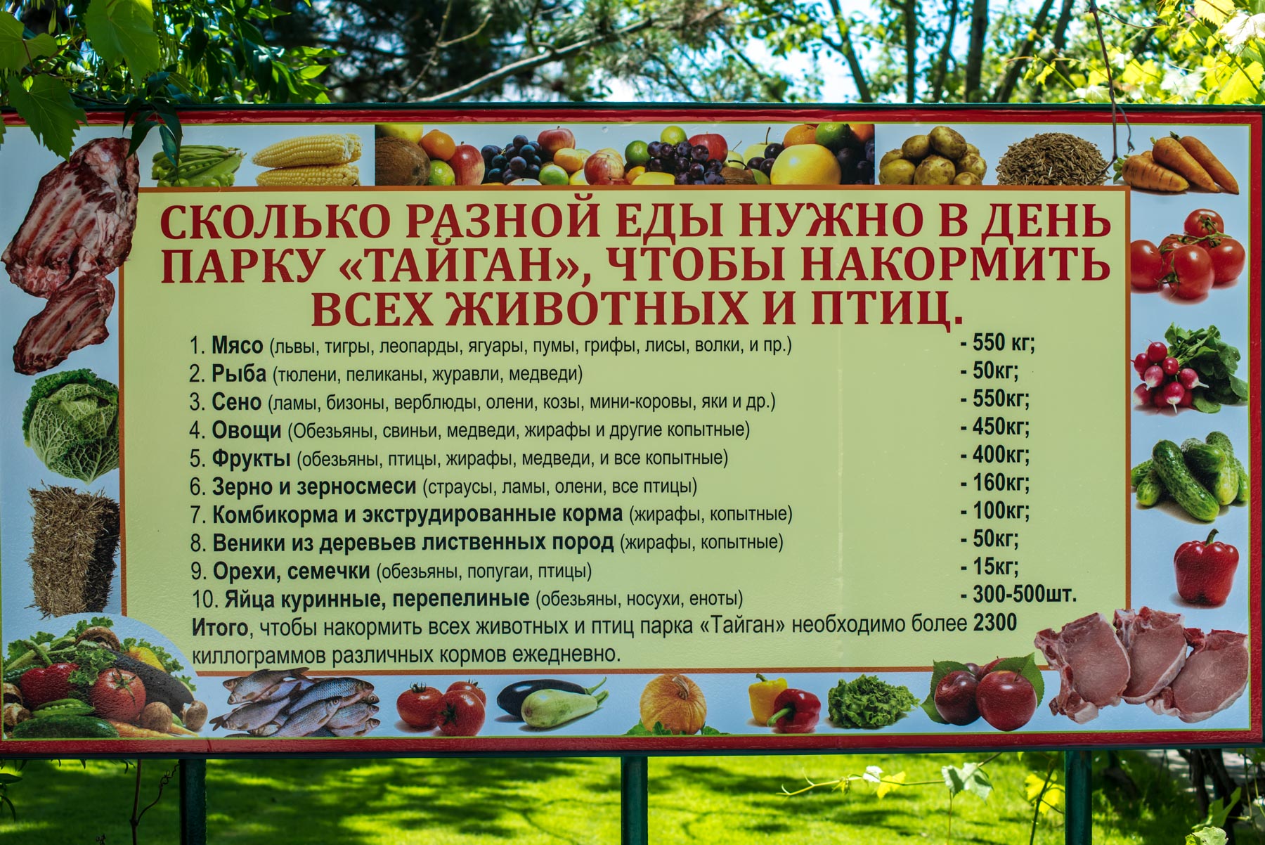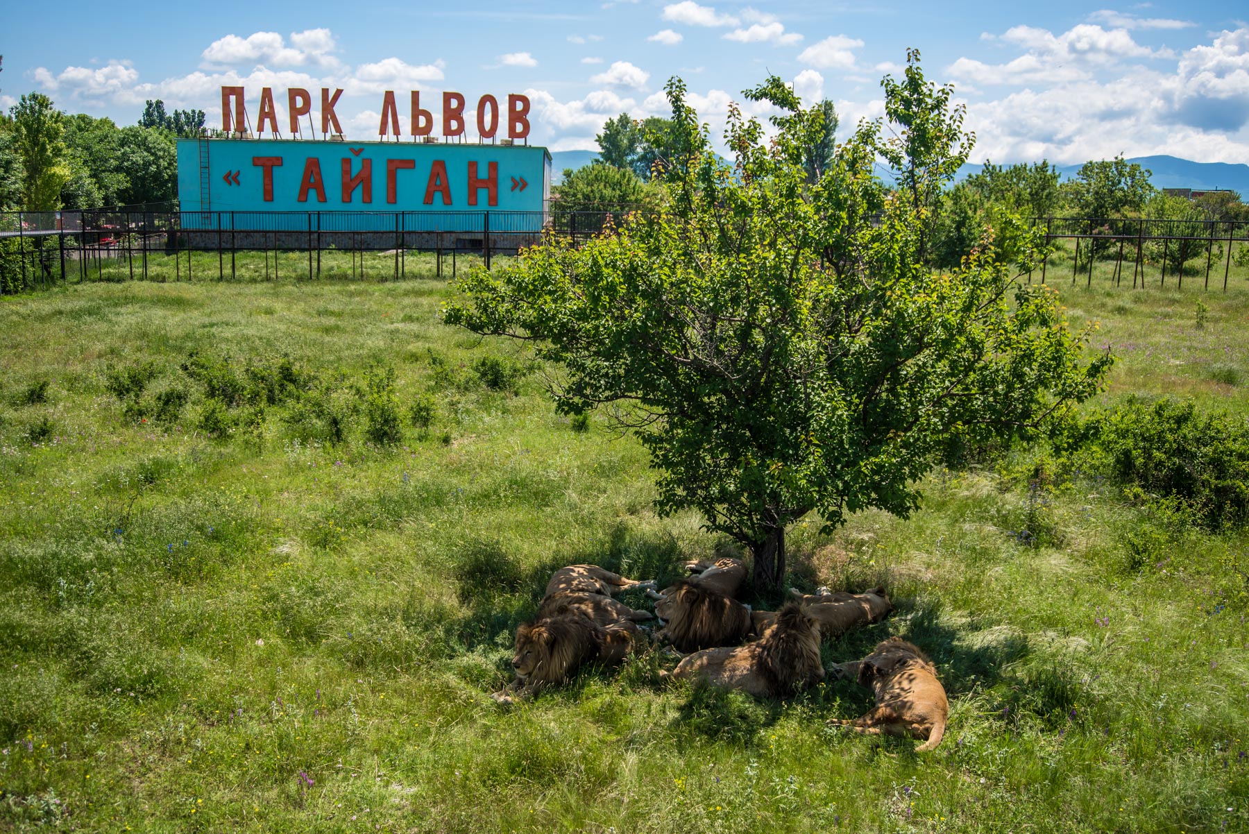Это первый парк львов в Европе, где на территории более чем 30 га свободно живут около 50 африканских львов. Парк был назван в честь водохранилища Тайган, на берегах которого он и расположен. Посетители парка львов “Тайган” могут наблюдать хищников в естественной среде обитания – без клеток. Смотреть на кошек можно со специальных мостиков, которые раскинуты над всей территорией проживания львов. Длина обзорных мостов над сафари-парком составляет более 1 км. Львы – не единственные обитатели зоопарка, всего здесь насчитывается более 80 видов. Всех животных, в том числе и львов, можно кормить здесь же приобретенным кормом.
