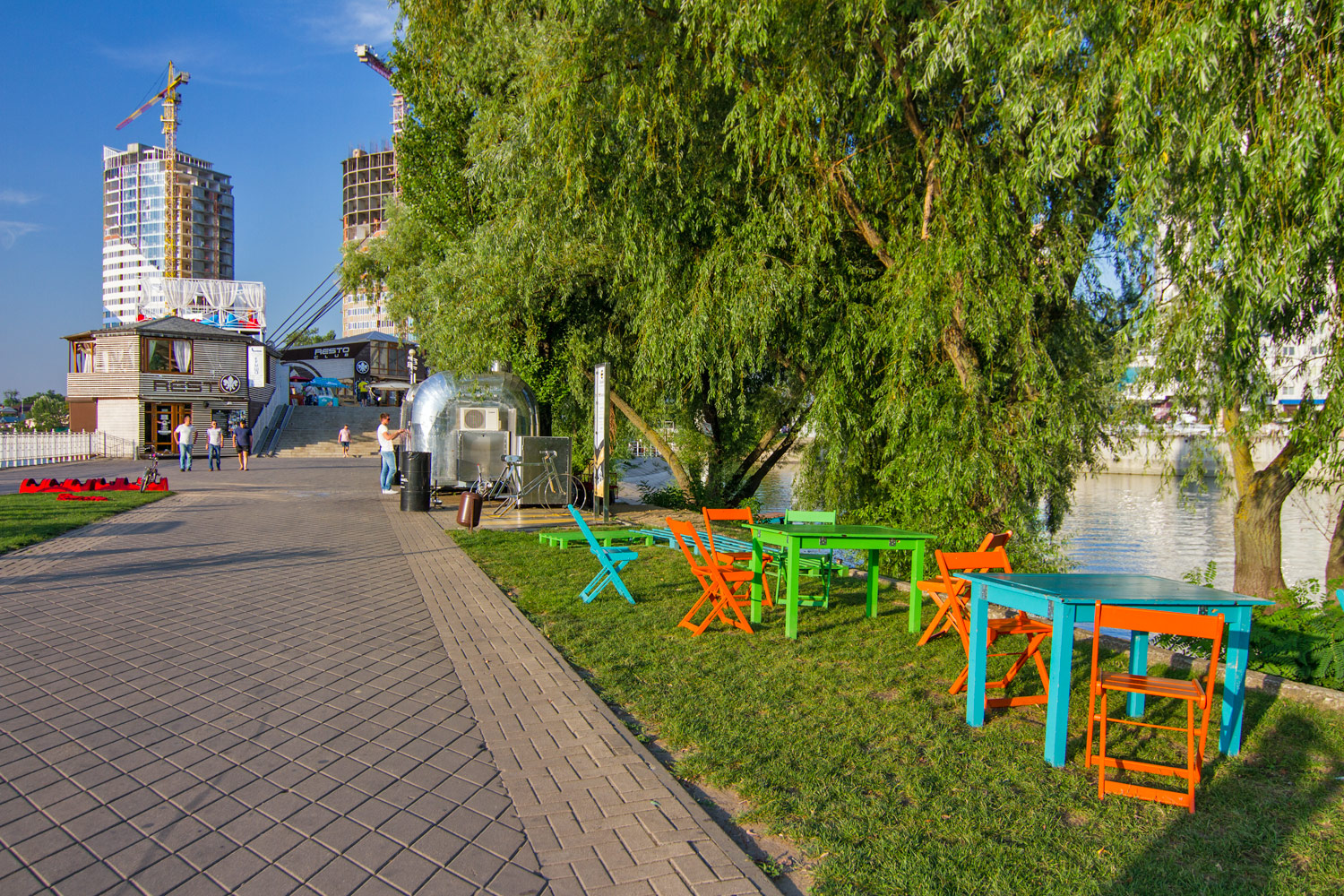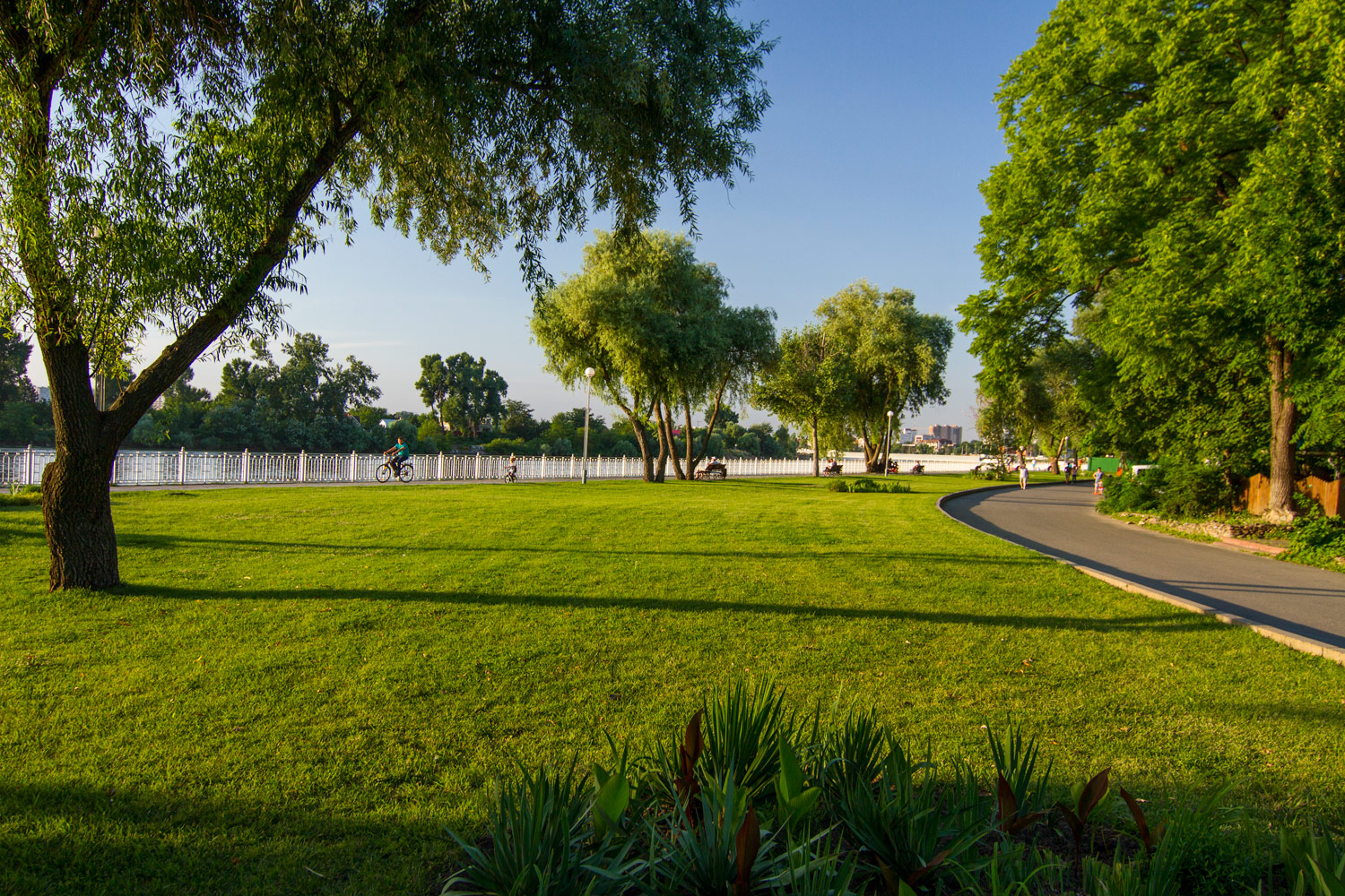 По другую сторону от затона водоёма комплекс элитных новостроек, на него можно полюбоваться с Моста Поцелуев. Можно пробежаться мимо шашлычных беседок по Тропе здоровья, пока не стемнело. В парке под открытым небом расположен музей военной техники. Ещё где-то здесь есть музей Высоцкого, открытый не так давно. Самые смелые могут перепрыгнуть забор и полазить по заброшенному аквапарку. В общем, городские власти не врут и парк на Затоне развивается.