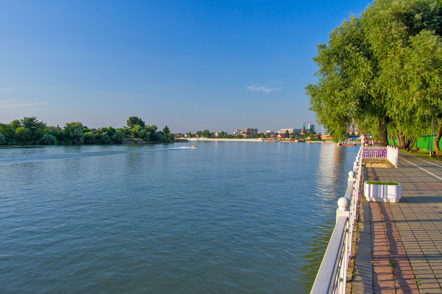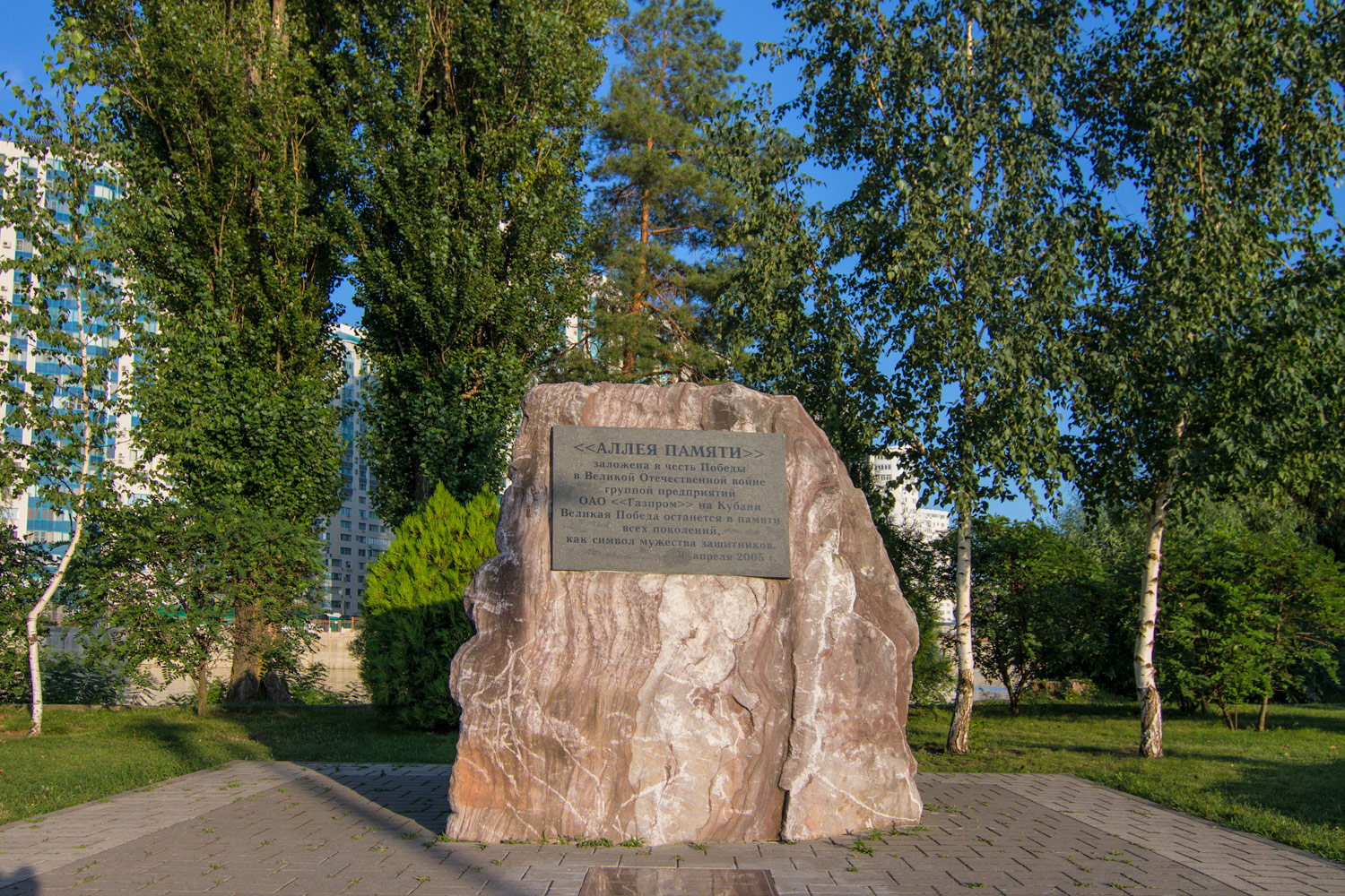 Один из крупнейших городских парков Краснодарского края, если не самый крупный. Площадь его составляет более 57 гектаров. Но так было не всегда. Ещё в тридцатых годах прошлого века здесь была невообразимая окраина и пустырь. Чуть позже сюда было решено приводить речные суда для ремонта и обслуживания. Со временем как-то сами собой появились лавочки, навесы, раздевалки. Горожане стали высаживать здесь деревья на субботниках, а к 1975 году открылся и сам парк. То был год тридцатилетия Великой Победы, потому парк и получил соответствующее имя.