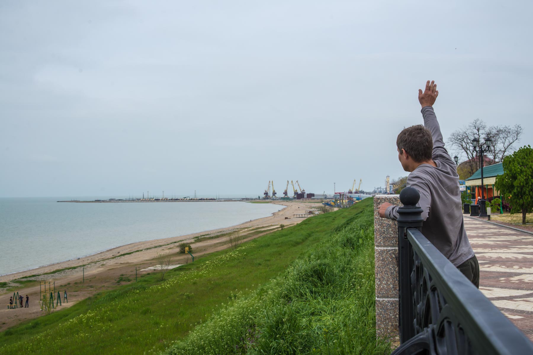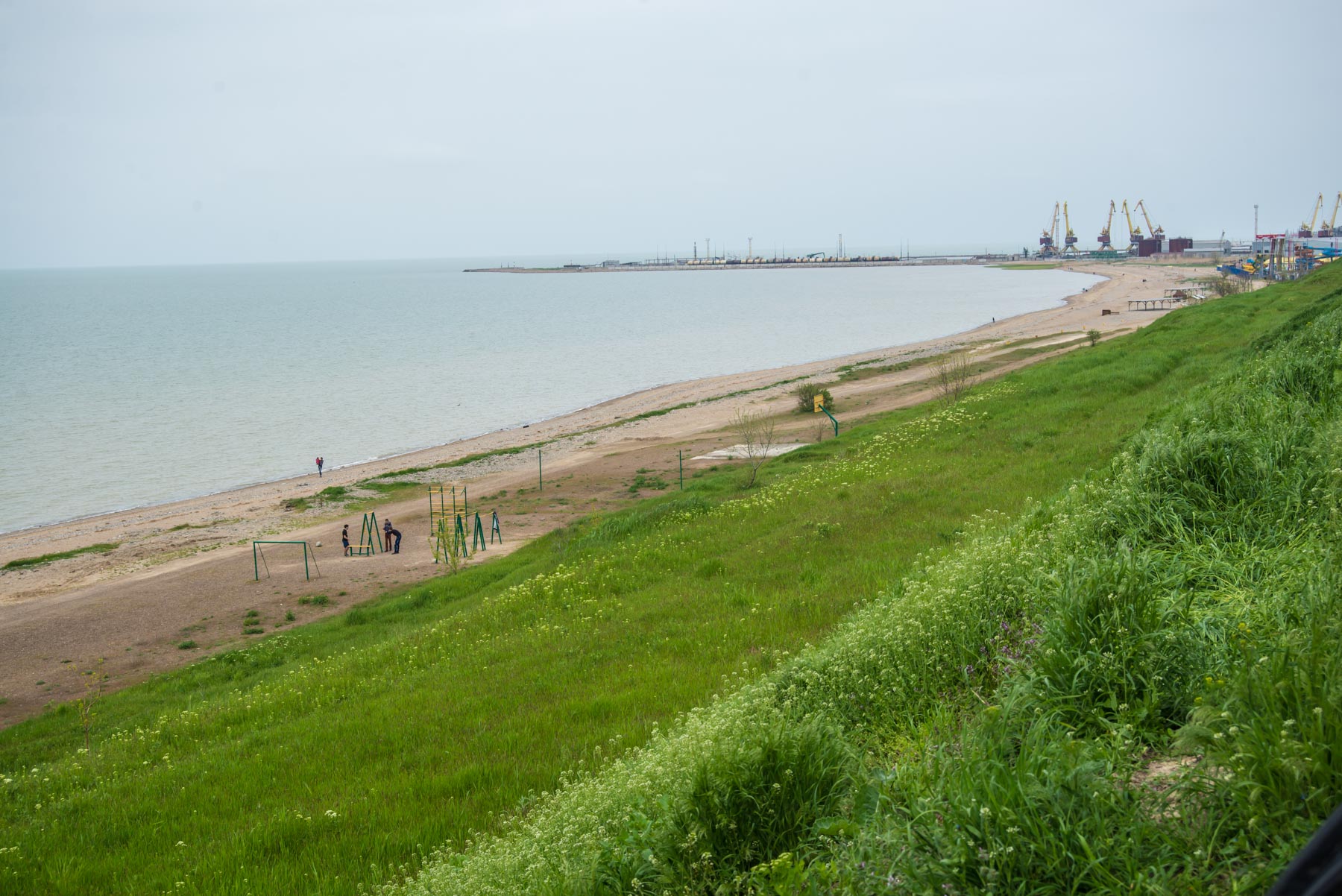 Этот пляж в городе Ейске оправдывает свое название. Берег и дно состоит из песка вперемежку с камнями. В левой части пляж более каменистый, чем в правой.