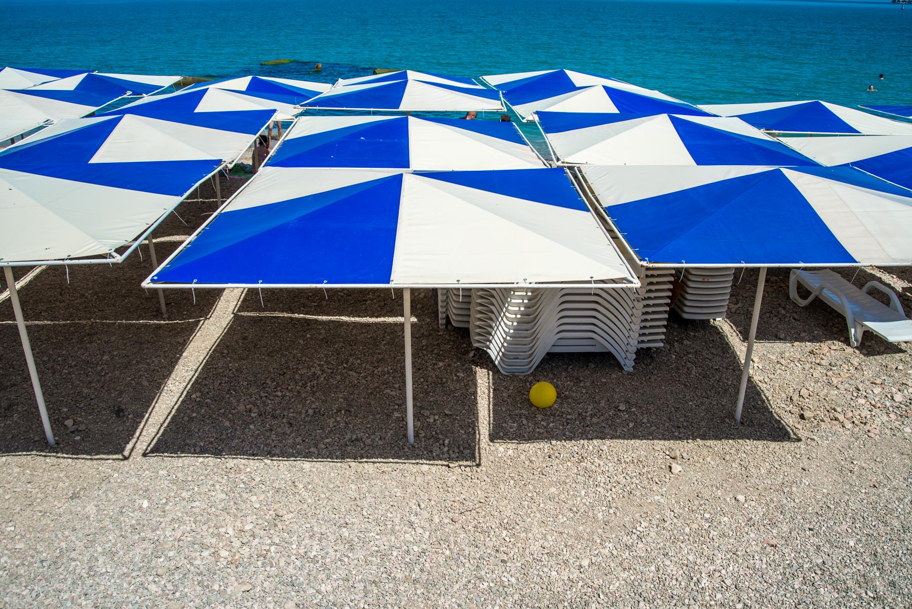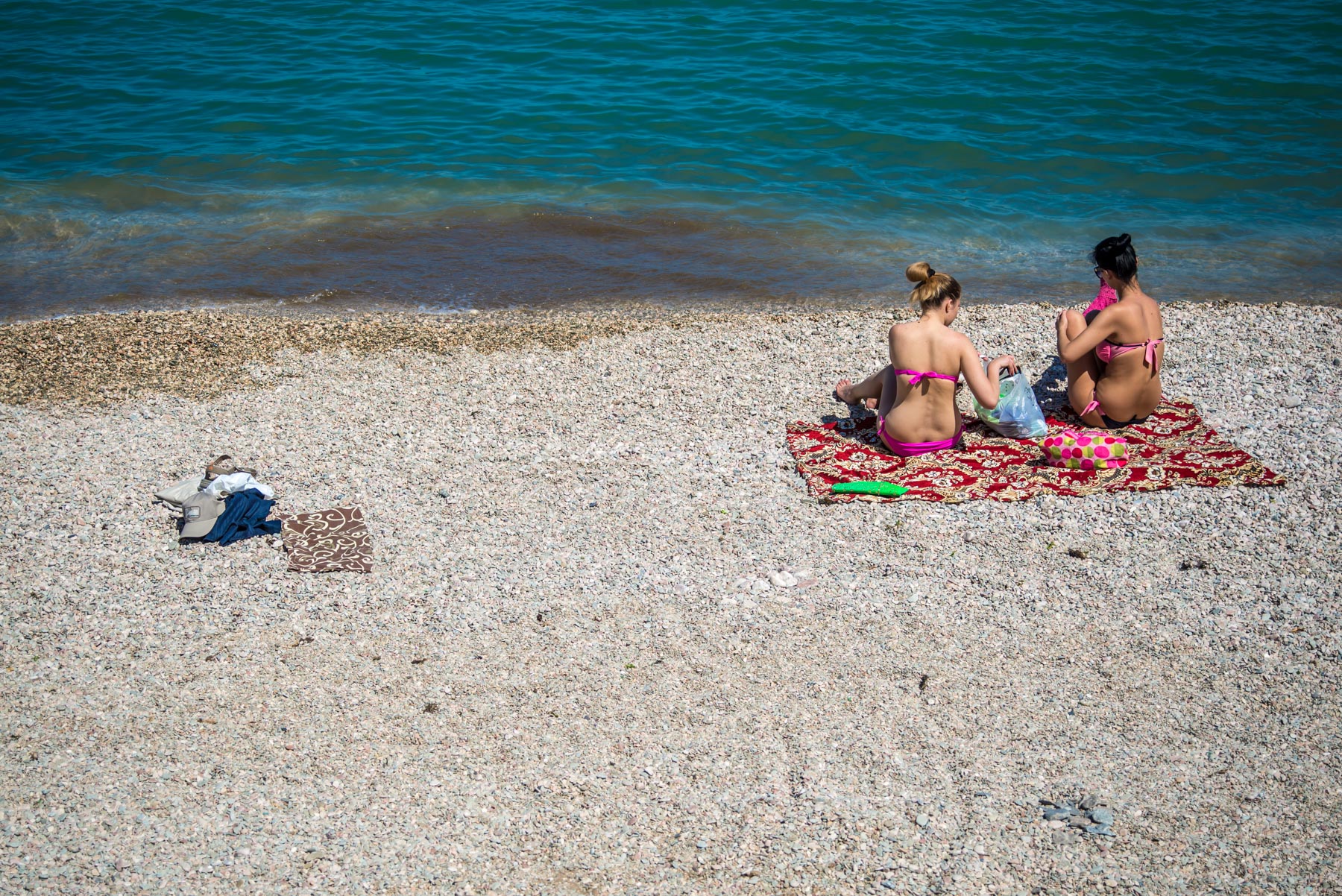 Покрытие здесь галечное, береговая линия не слишком широкая, в сезон много людей.