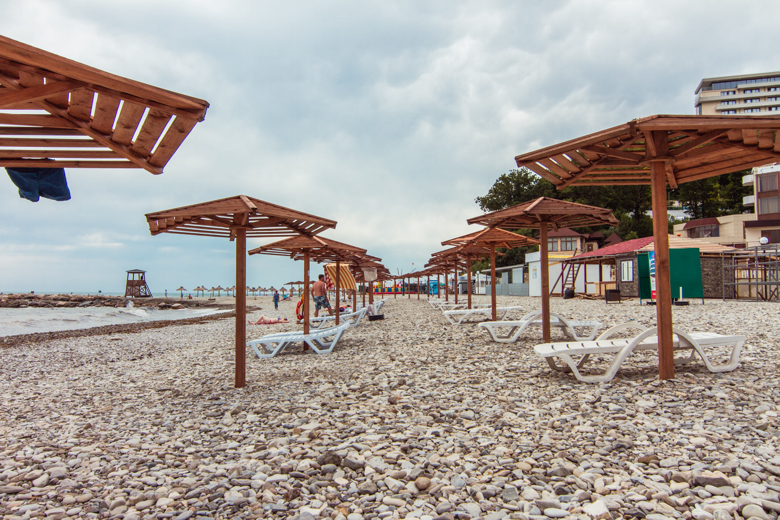 Центральный пляж курортного поселка Небуг раскинулся возле устья впадающей в Черное море реки Небуг. Этот пляж имеет ширину до 40-50 м и протянулся вдоль побережья на 500 м. С восточной стороны он ограничен закрытой пляжной зоной крупного оздоровительного комплекса «Ямал», а на западе заканчивается сразу за отелем «Морской клуб».