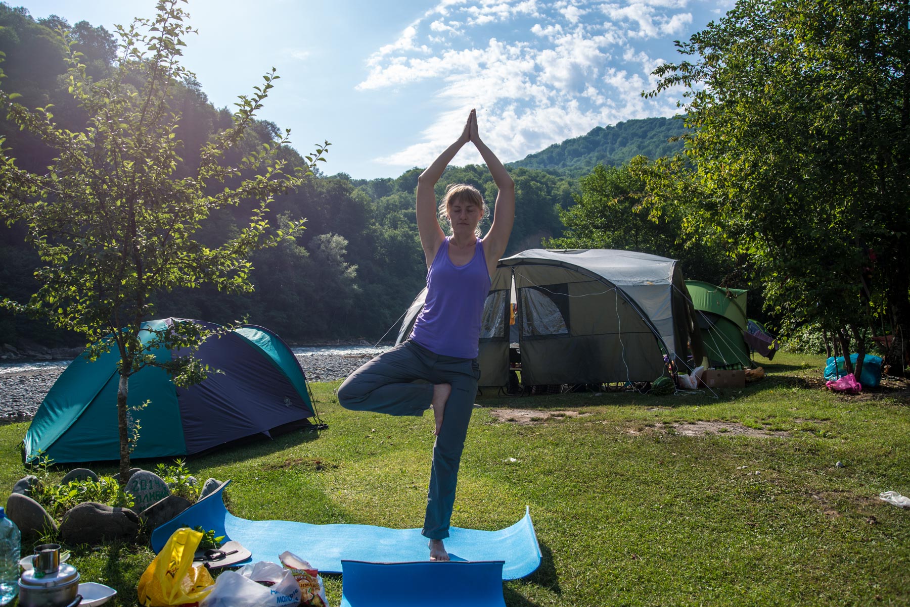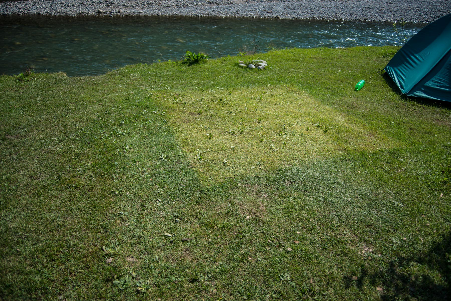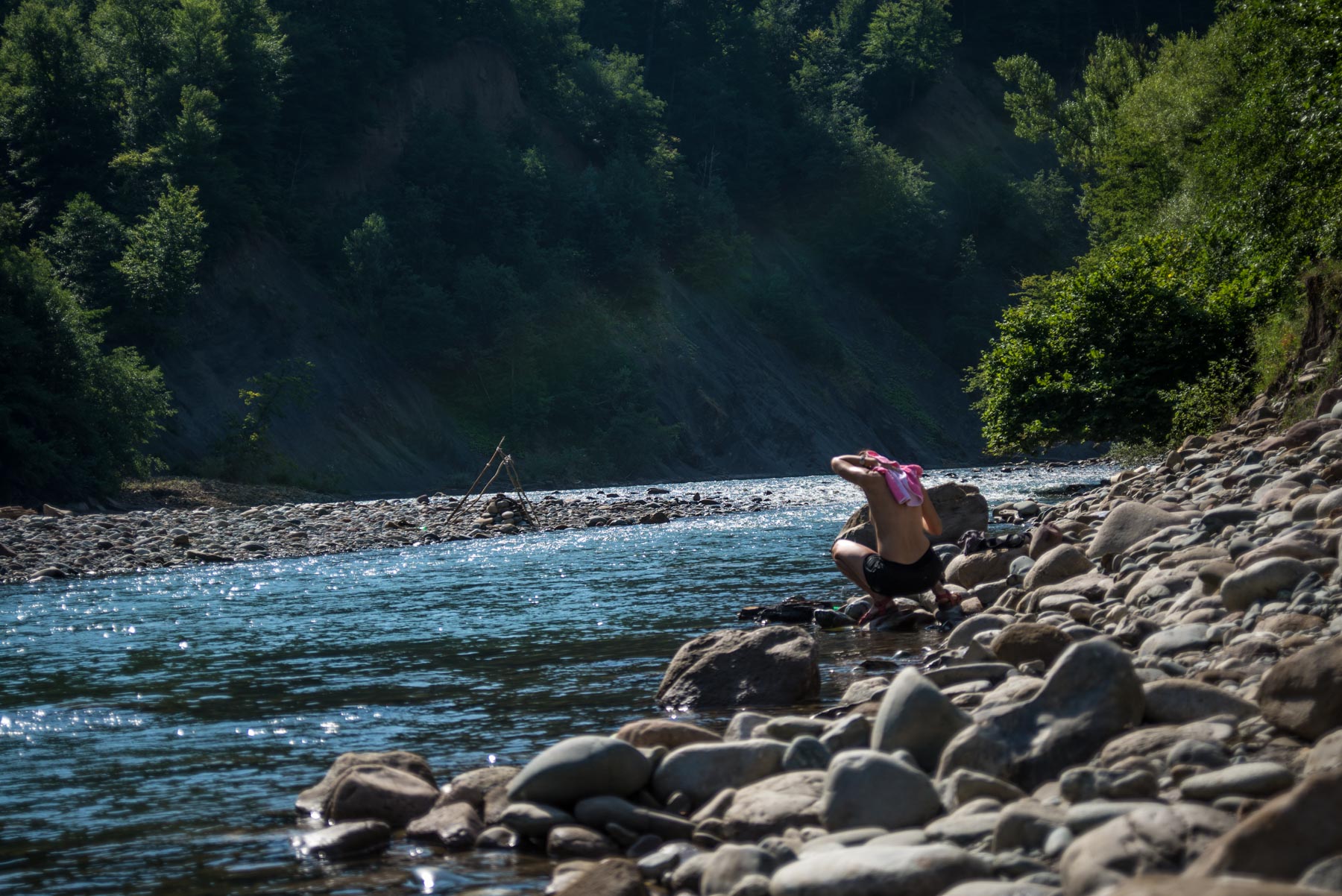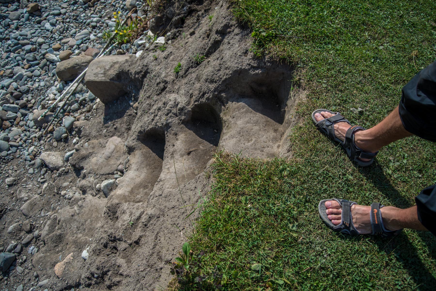 - Обитатели кемпинга прорубили несколько лестниц в земле, по которым удобно спускаться к речке,