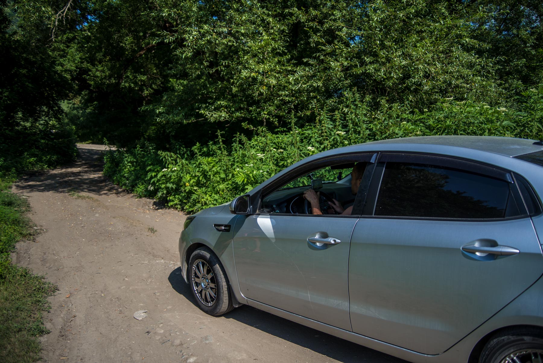 - Грунтовая дорога, по которой можно подъехать к местам стоянок возле реки,