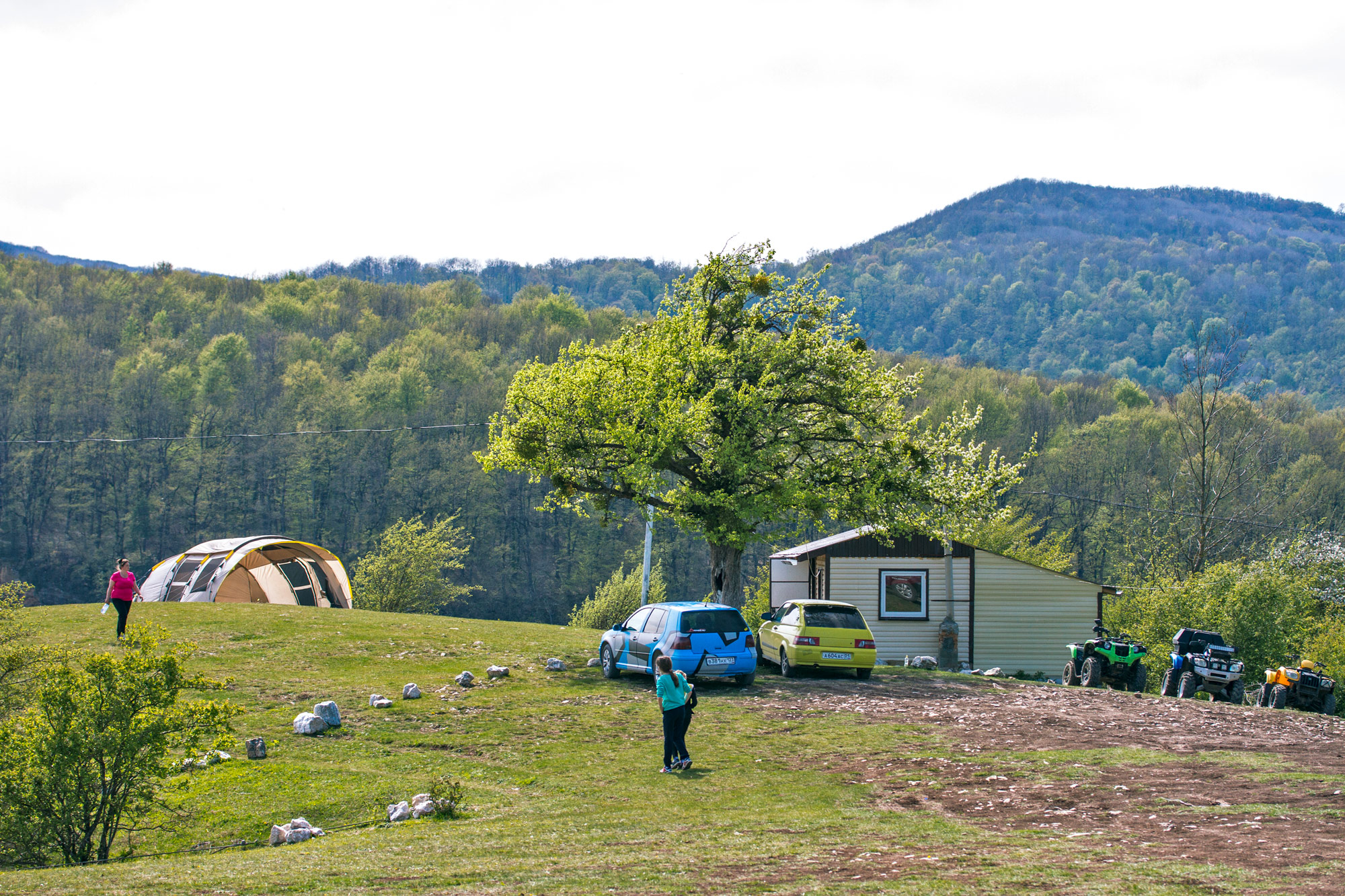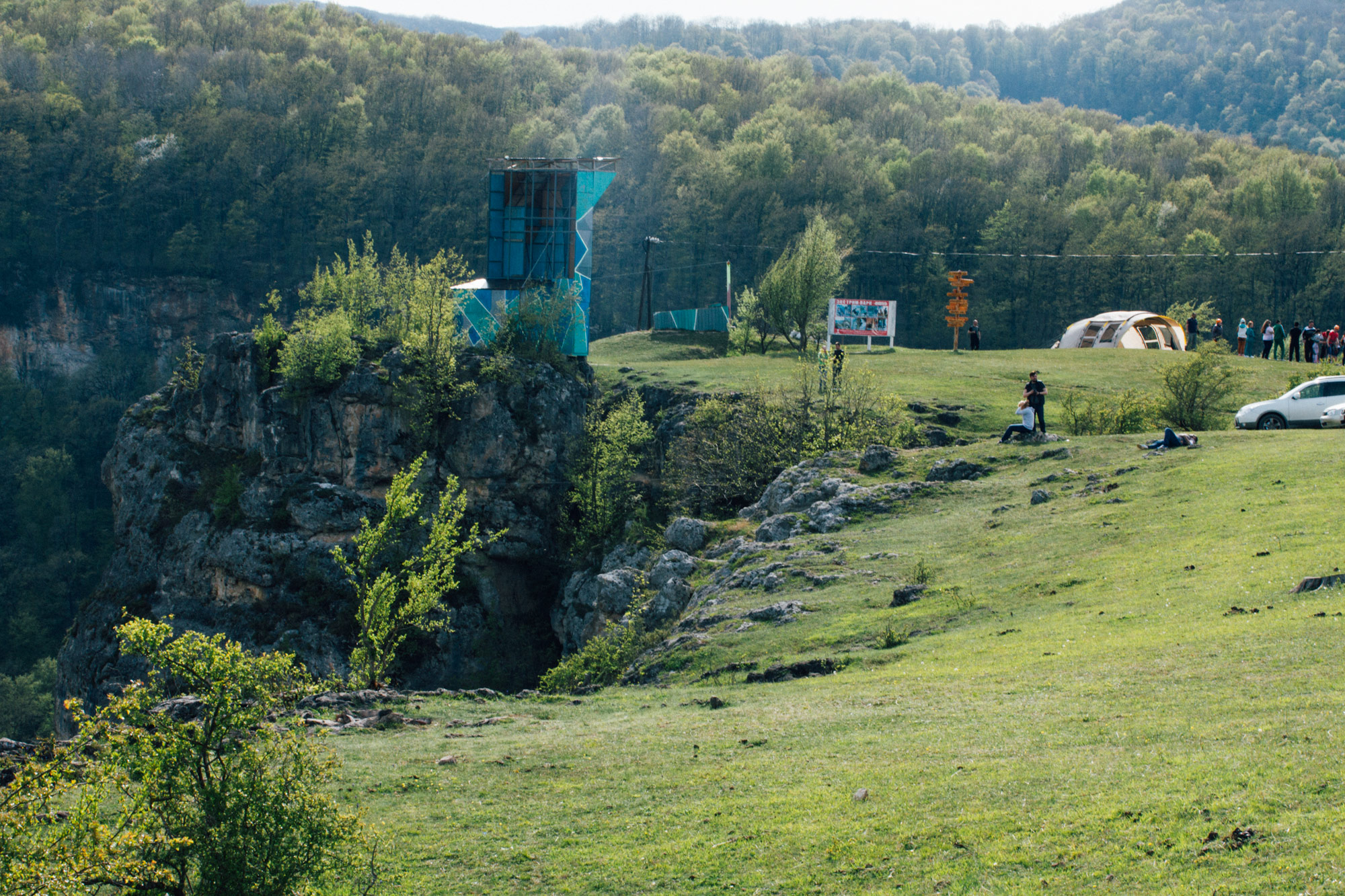 Отличная полянка с прекрасным видом на ущелье Мишоко (иногда называют Мешоко). Помимо прочего, здесь можно сделать шашлык или разбить пикник – места много. Совсем рядом находится экстрим-парк Мишоко. Так же можно покататься на конях, или спуститься к водопаду ущелья Мишоко