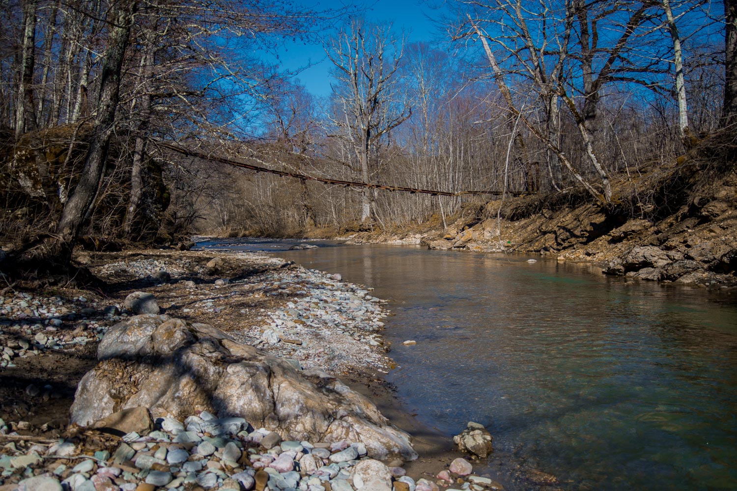 После того, как вы доберетесь до реки Сахрай, необходимо перейти ее по подвесному мосту, который находится в аварийном состоянии. Если вы этого делать не хотите, то можно форсировать реку вброд.