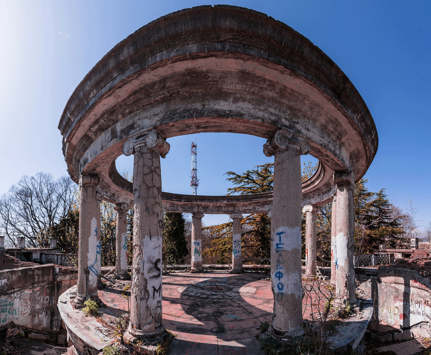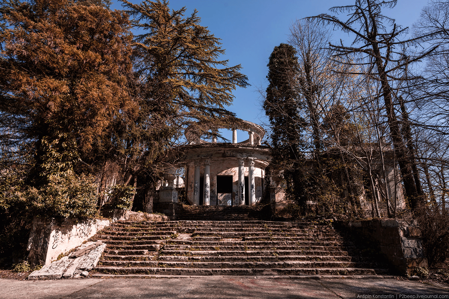 Почему же такая красота пустует? Это здание строили как ресторан для высокопоставленных чиновников. В тридцатые годы прошлого века в Сочи каждое лето отдыхал сам Сталин, а значит, сюда слеталась вся советская номенклатура. В 1937 году ресторан распахнул свои двери. Огромный (1000 кв. метров), расположенный на высоте 700 метров над уровнем моря, роскошно украшенный, ресторан обещал стать настоящей сенсацией.