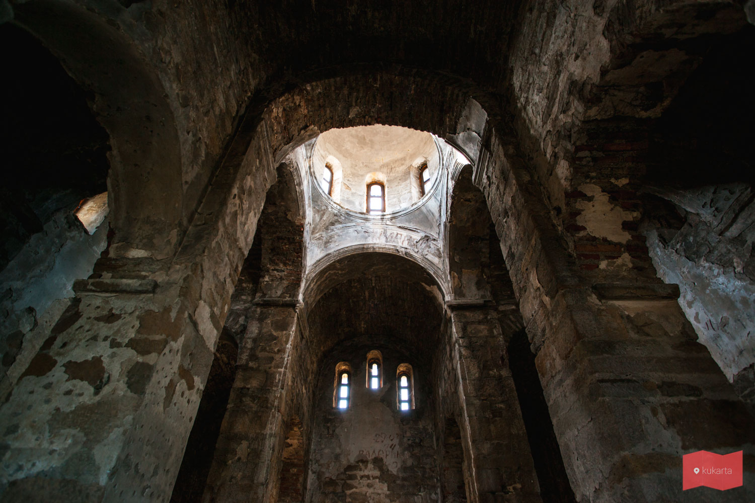 На стенах просматриваются древние фрески и надписи: греческие, арабские, грузинские, армянские и русские. Они были обнаружены совершенно случайно. В 2007 году жители села произвели самовольный ремонт собора. При этом была грубо сбита поздняя штукатурка в интерьере храма, под которой находилась первоначальная обмазка, но зато открылось миру все вышеперечисленное.