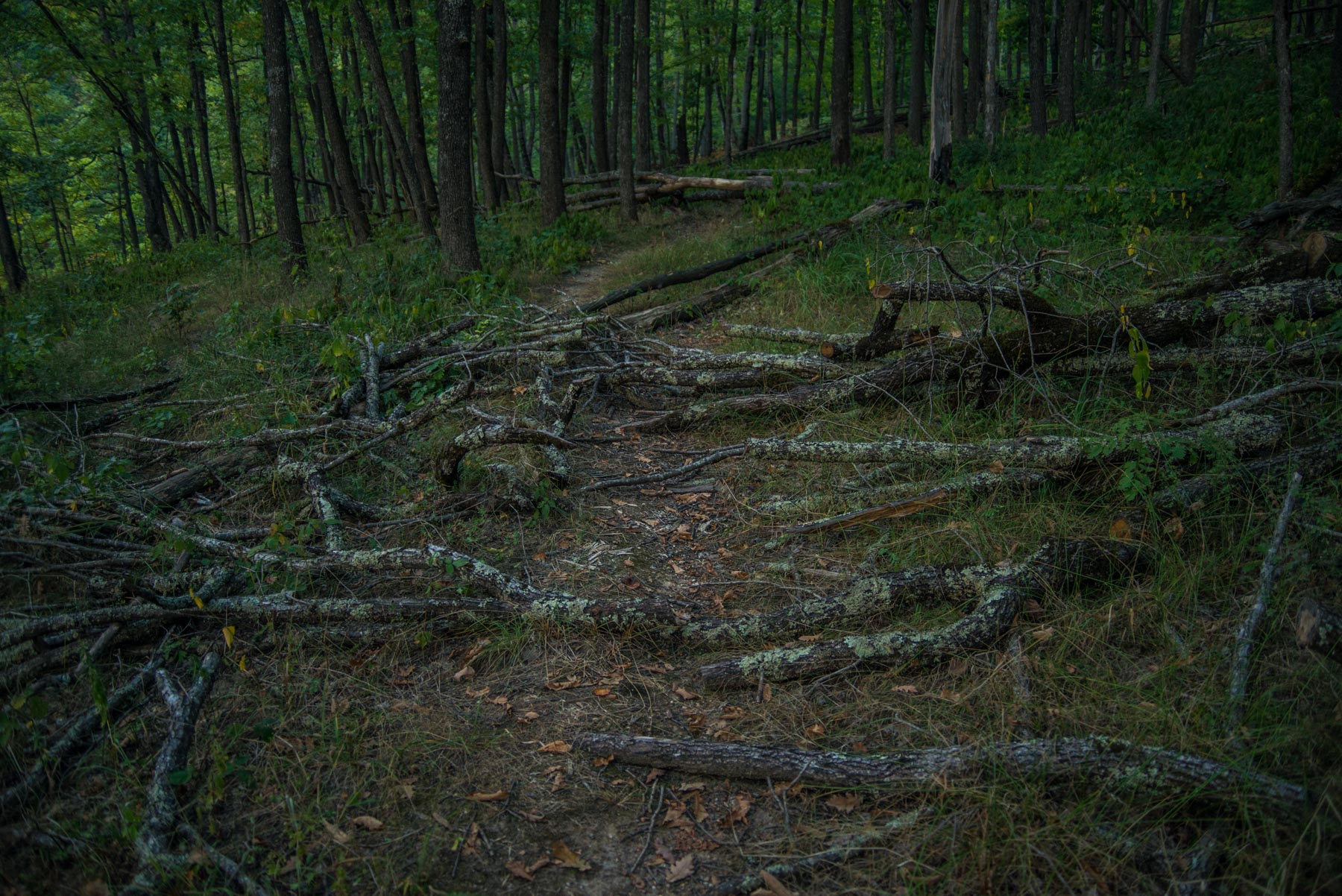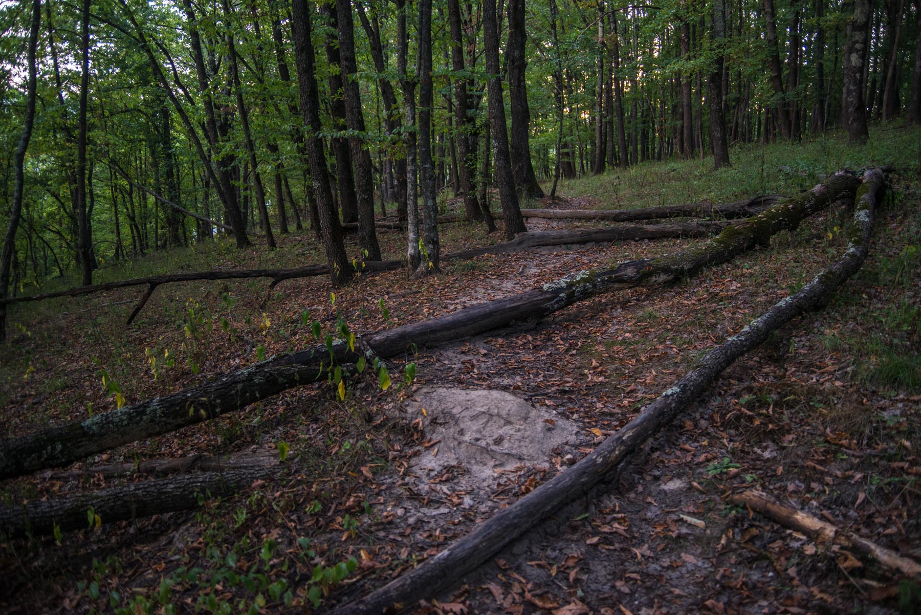 Дальше на карте можно увидеть такой объект как “Космодром”. Название многообещающее, но по факту ничего особенного. Сразу за Окном тропа портится, здесь она забросана лесным мусором.