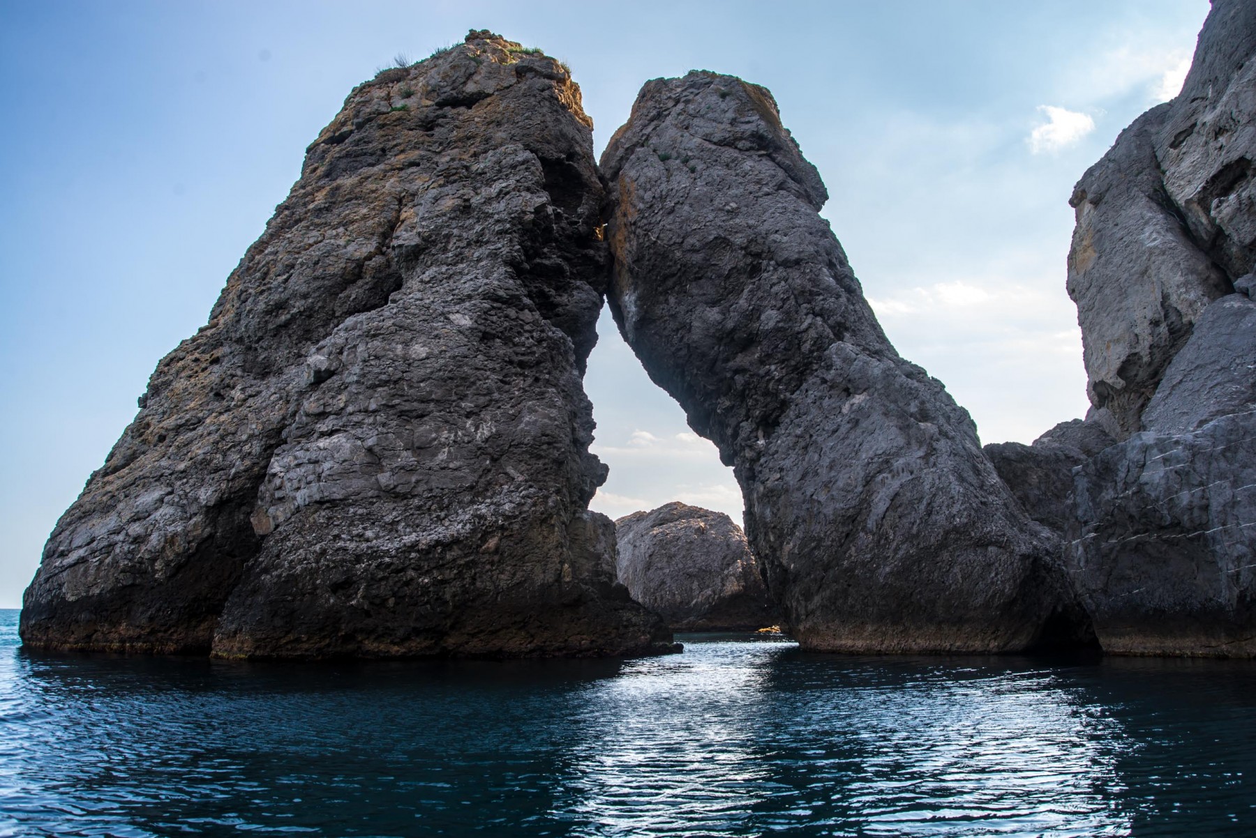 Причудливо прислонившиеся друг к другу валуны, которые находятся в заказнике “Новый Свет” под горой Караул-Оба. Стоят в воде у самого берега. Другое название “Пьяные монахи”.