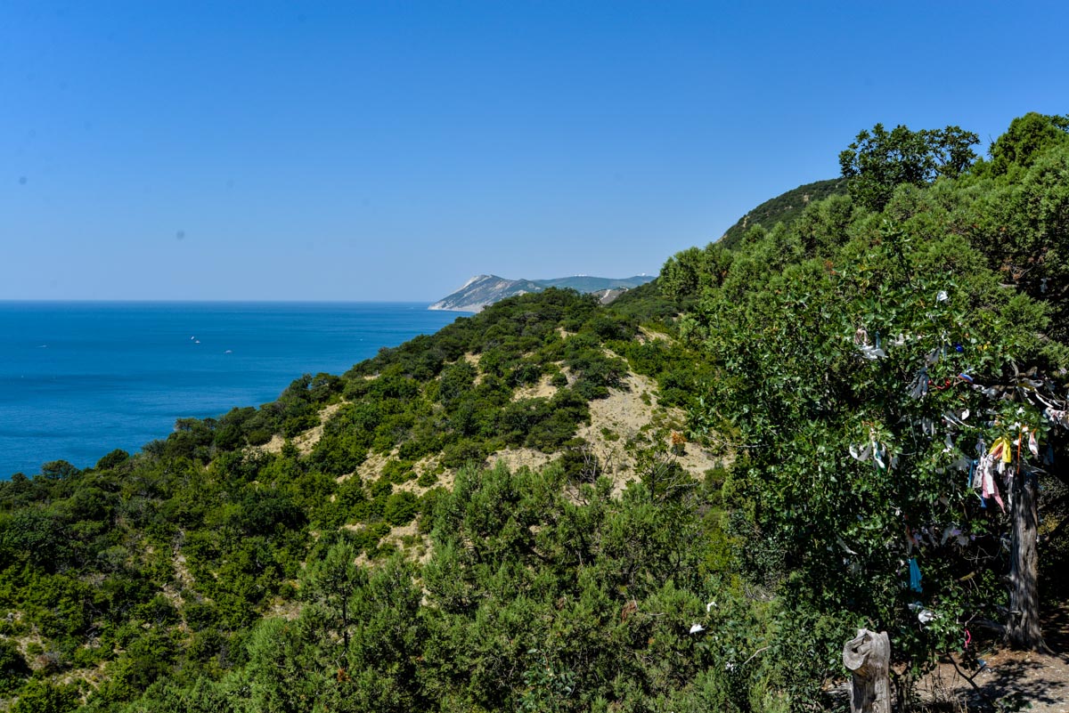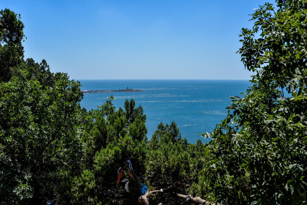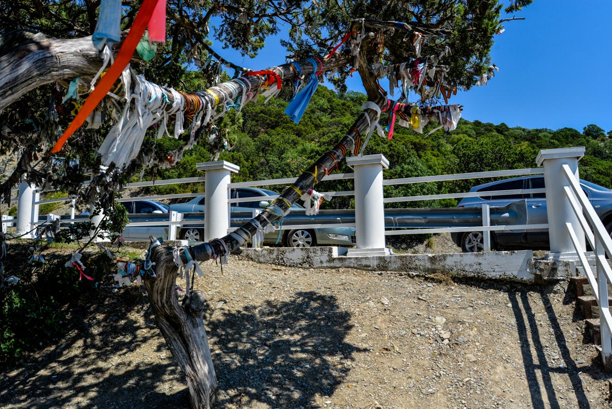 Отсюда открываются хорошие виды на мыс Большой Утриш, одноименный поселок, Черное море и Солдатскую гору. Есть довольно большая парковка для автомобилей, но в сезон ее все равно не достаточно, потому что эта смотровая площадка пользуется большой популярностью.