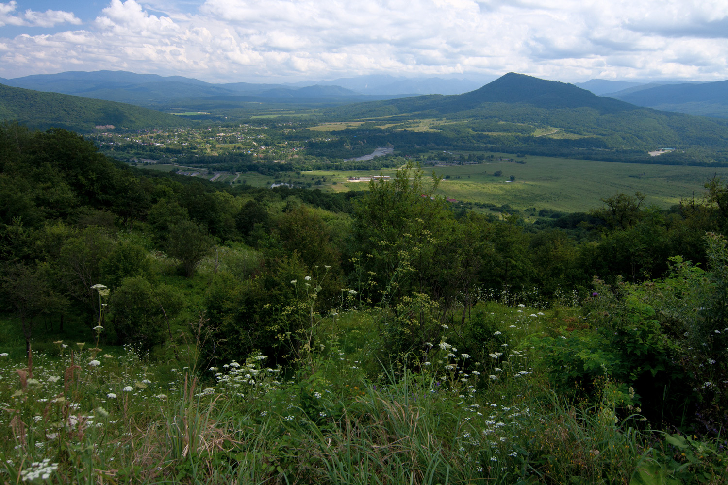 Смотровая площадка на Даховскую и окружающие станицу горы – первая при подъеме на плато Лаго-Наки. С нее же вы сможете насладиться прекрасным хребтом Уна-Коз и увидеть часть хребта Азиш-Тау.
