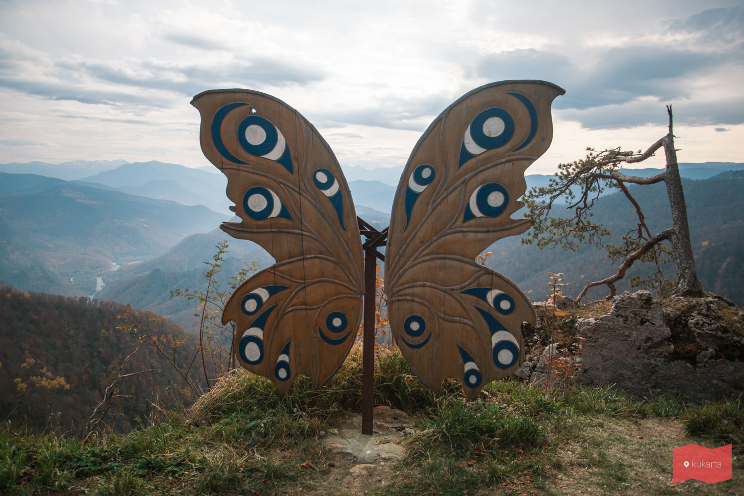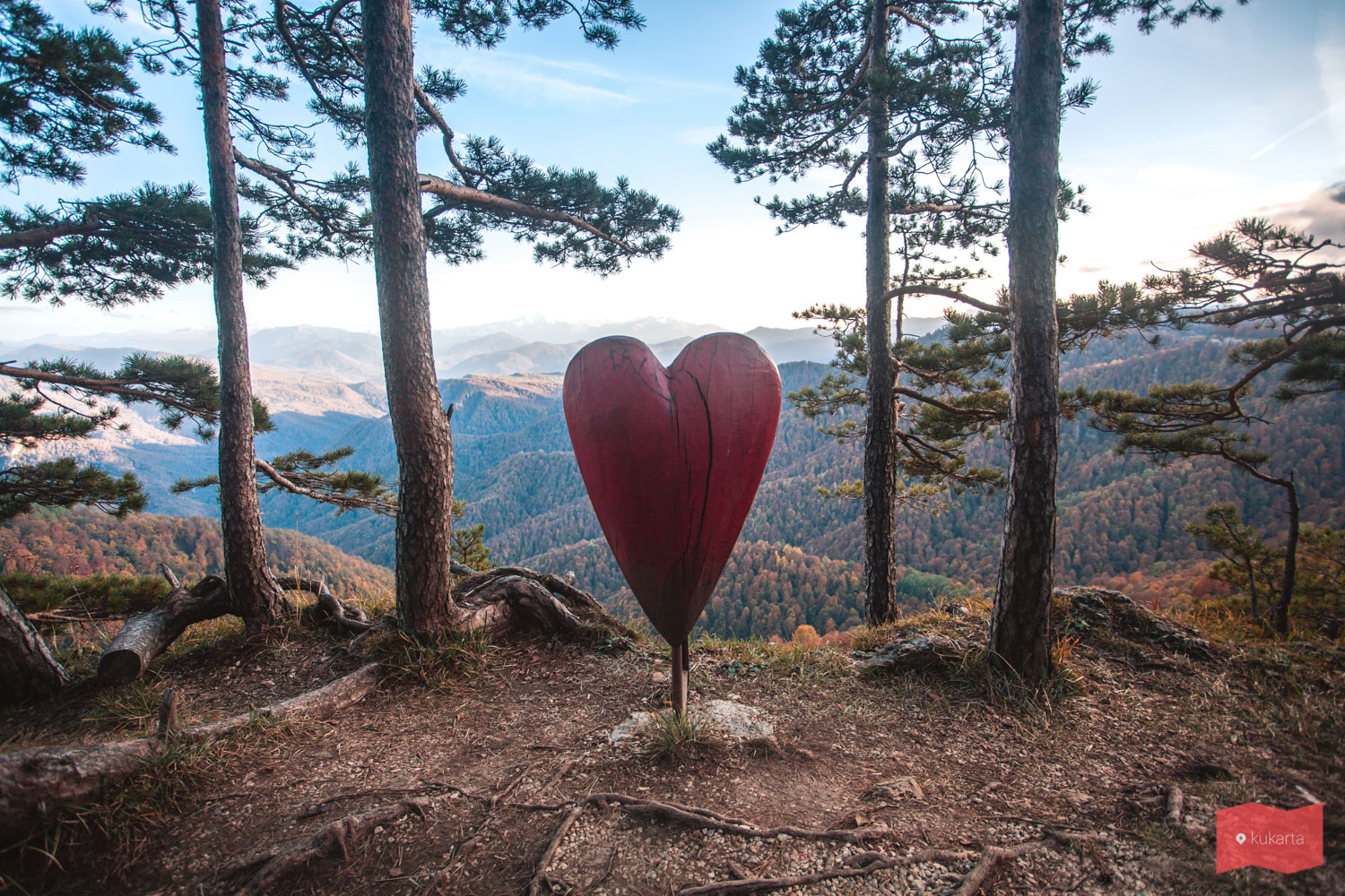Гуляя в окрестностях базы, можно подняться к обрыву хребта на площадку, получившую название «Остров любви». С края пропасти откроется живописная панорама окрестностей: можно рассмотреть горные вершины, леса и речные каньоны. Прямо над обрывом есть горные качели. Тут же расположены небольшие арт-объекты: деревянное «сердце гор» и огромные крылья бабочки, которые можно «примерить».