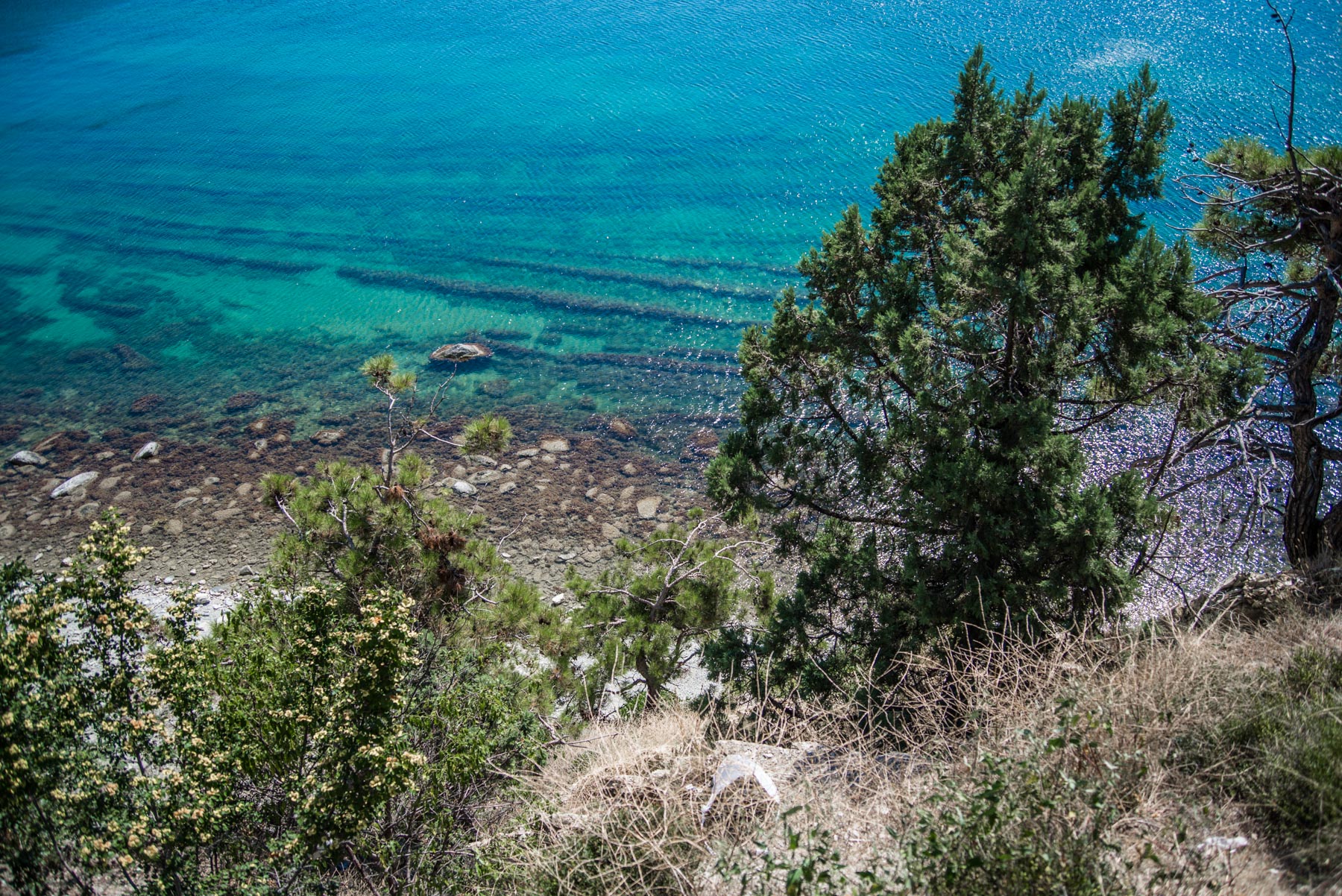 Находится по пути из Новороссийска в Кабардинку. Можно остановиться и сфотографироваться. На смотровой площадке установлена симпатичная белая беседка, которая расположена над морем на скале. Хорошего спуска на пляж здесь нет. Вокруг беседки растут сосенки. Перед смотровой на дороге есть небольшой «карман», где поместится несколько машин.