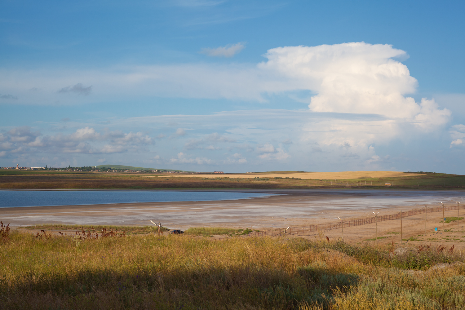 На машине проехать можно двумя путями: 1. Едем по дороге из Тамани в Веселовку, после поселка Таманский на повороте съезжаем прямо на грунтовку, едем пару километров между виноградников в направлении моря. Перед морем будет спуск с поворотом налево, за ним шлагбаум. Открывается вид на песчаную косу – справа море, слева соленое озеро. Второй путь – из поселка Веселовка едем к Бугазской косе, а от развилки к маяку, опять шлагбаум и соответственно слева море, а справа соленое озеро.