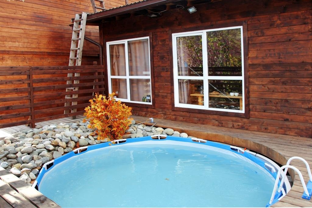 Гостевой дом находится в поселке Эсто-Садок, пер. Лунный, 1. Для постояльцев отеля открыта традиционная русская баня и баня по-черному. Здесь можно получить процедуры ароматерапии с лесным отваром, а также сделать растирания солью и медом.