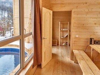 Современный банный комплекс на территории Красной Поляны. Русская дровянная баня, турецкий хаммам, фитобочка, холодные и горячие купели.