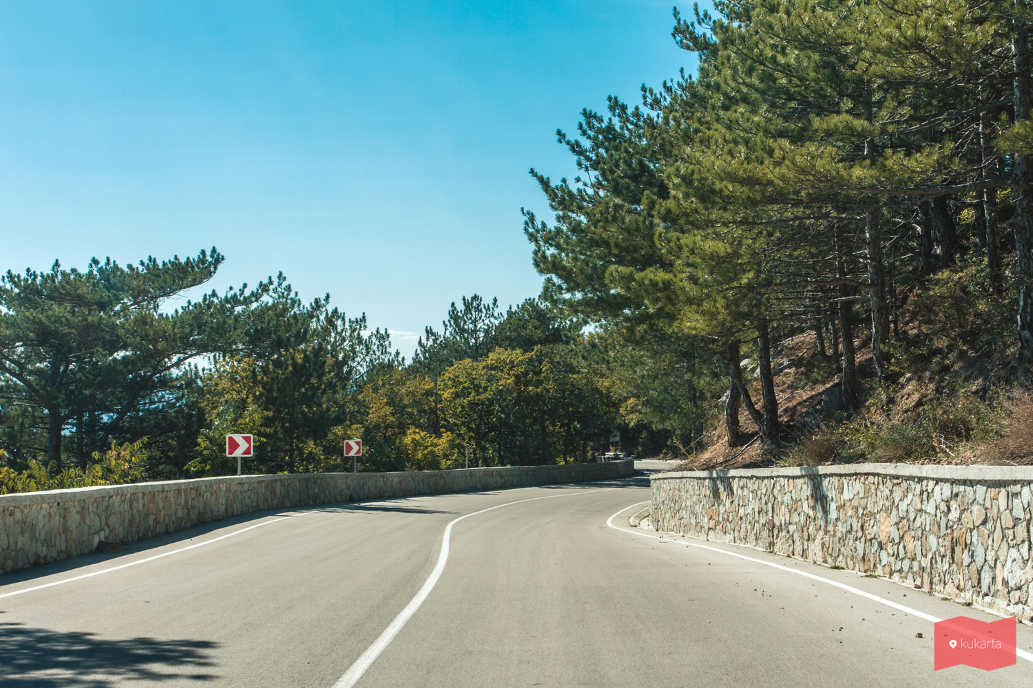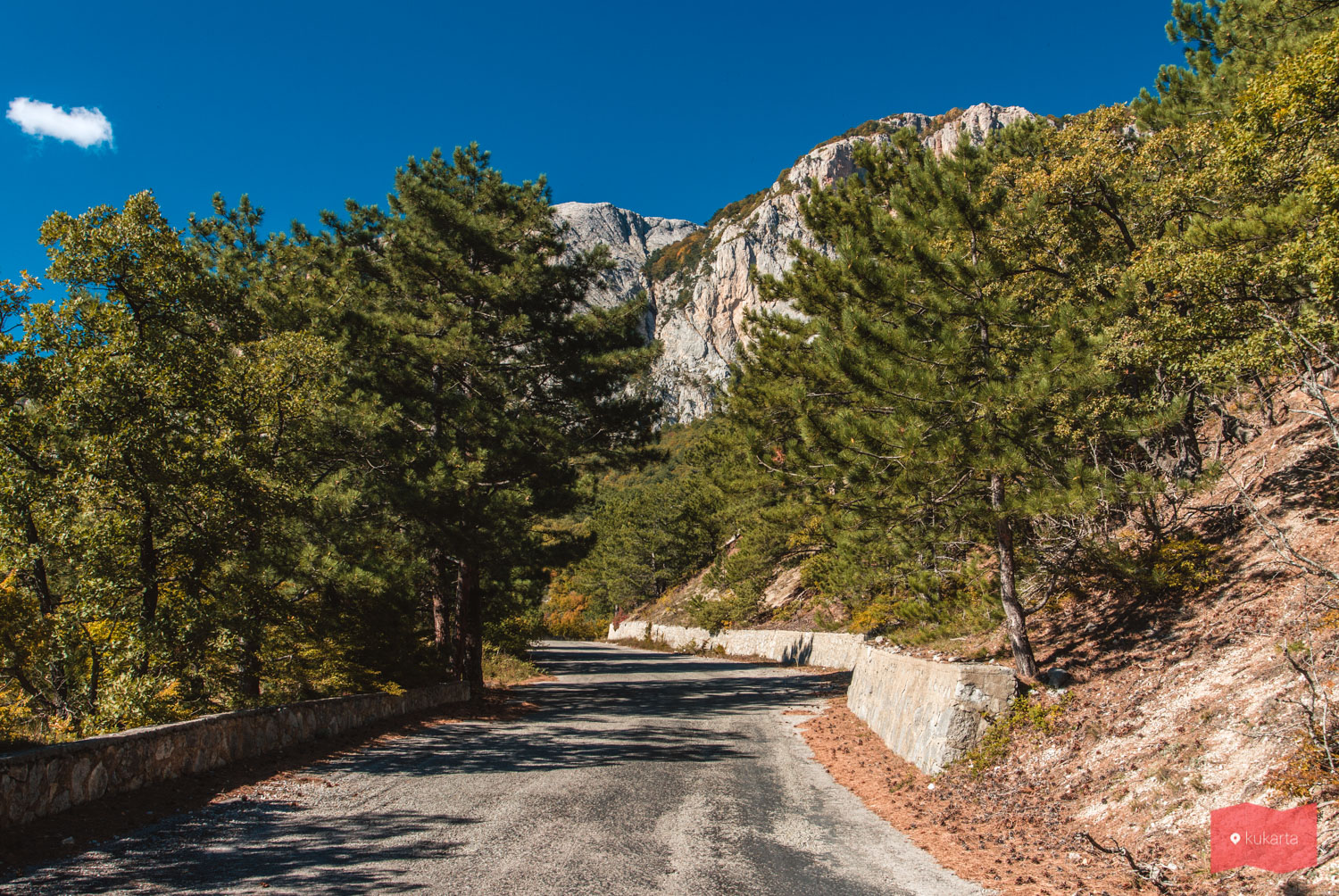 Если вы едете из Ялты, то подняться на старое Севастопольское шоссе можно в районе поселка Голубой залив, поворот на него будет недалеко от Алупки. Именно отсюда начинаются красивые виды. Но можно подняться и сразу в районе Оползневого, что позволит повернуть немного позже, при этом не потеряв в визуальной части.