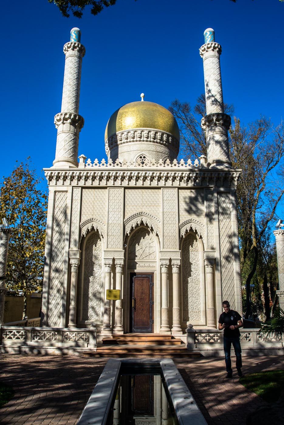 Вобрал всю исламскую и восточную культуру, от альгамбры в Испании до исфахана в Иране и Тадж-Махала в Индии. Все запечатлено здесь в орнаменте, линиях, в колоннах и сводах. Здесь можно говорить о великой исламской культуре, преобразившей быт и архитектуру Северной Африки, Ближнего и Среднего Востока, Индии, где уже восемь веков религия ислама уживается с древнейшими верованиями – индуизмом, буддизмом и джайнизмом.