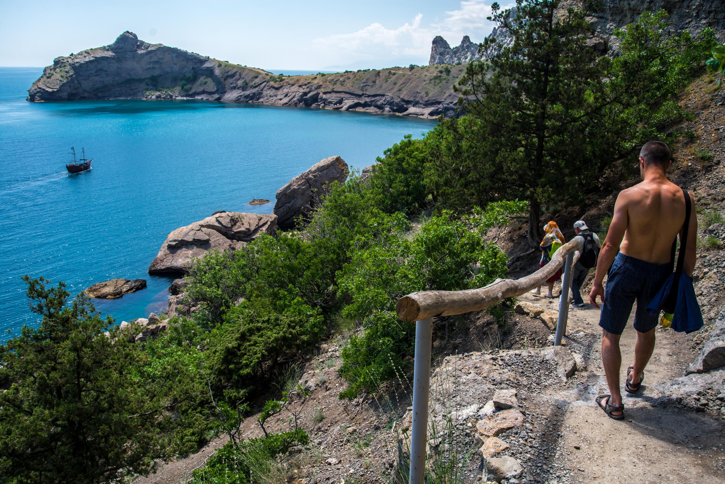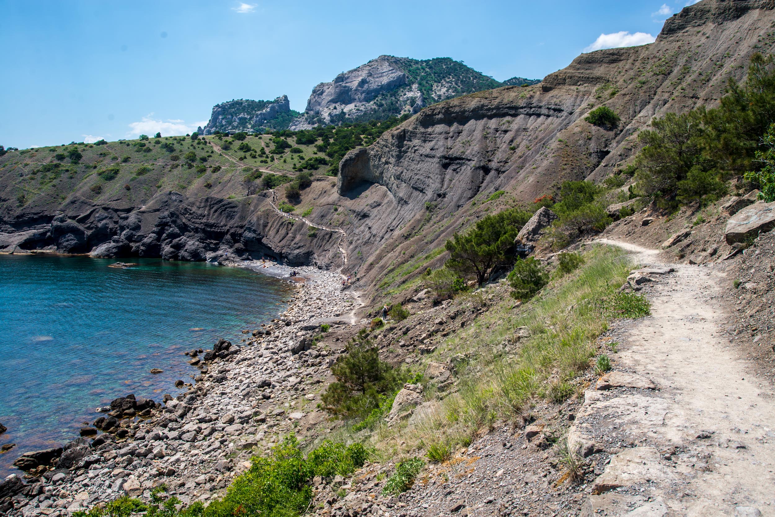 Оставить автомобиль можно на бесплатной парковке возле набережной поселка Новый Свет. Здесь помещается около 15 машин, так что в сезон мест на ней может не остаться. Чтобы найти парковку и вход на тропу, ориентируйтесь на отель “Винтаж”, он большой, заметный и находится как раз в конце автомобильной дороги.