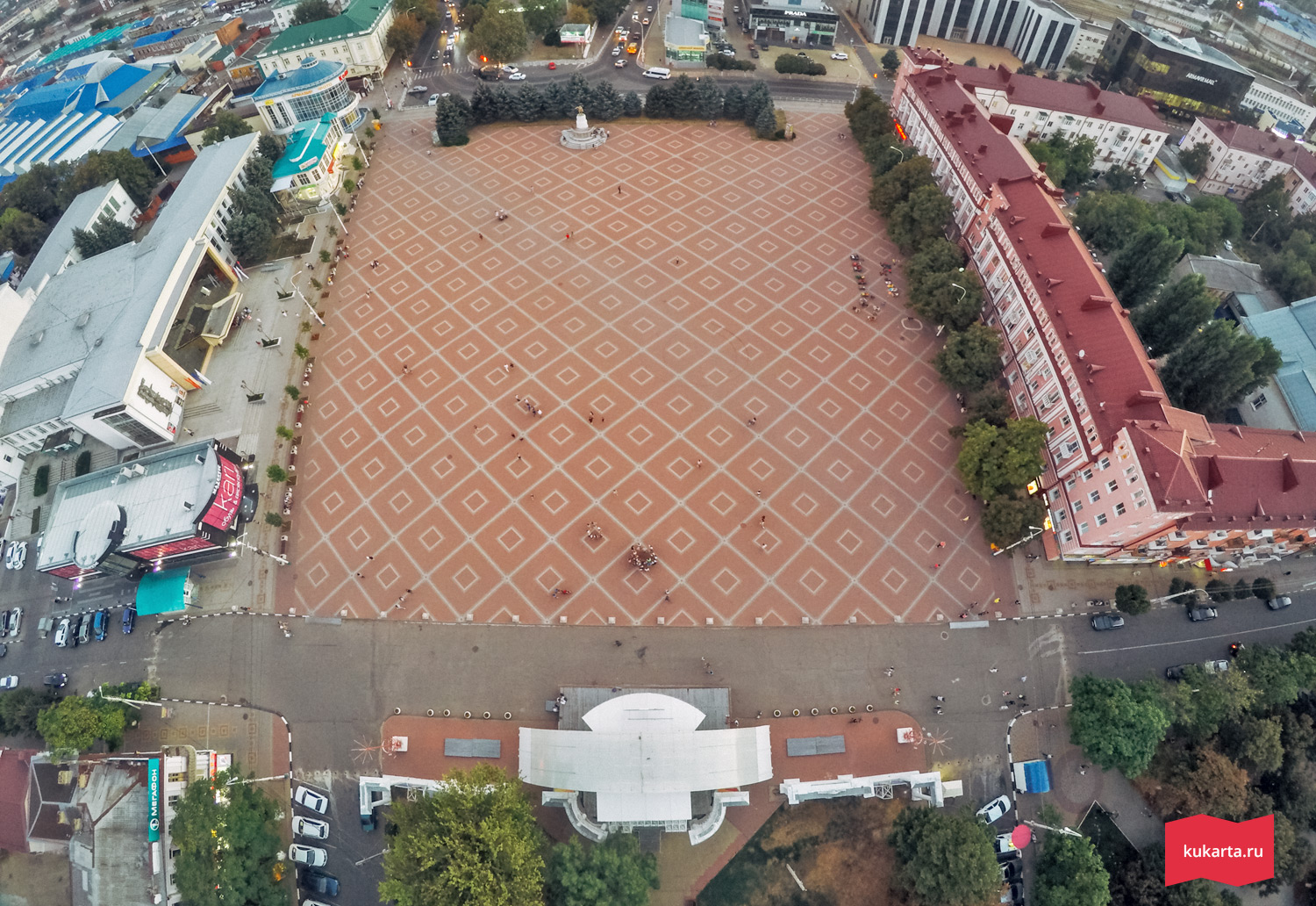Площадь находится в Армавире. Место проведения массовых мероприятий и концертов, установки елки и любимое место горожан, для прогулок.