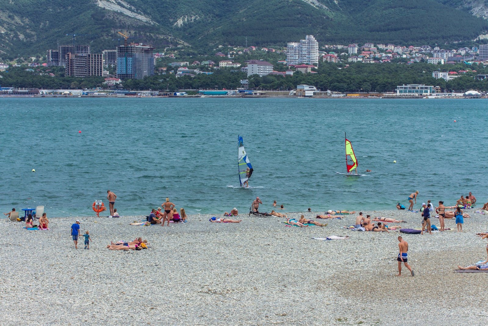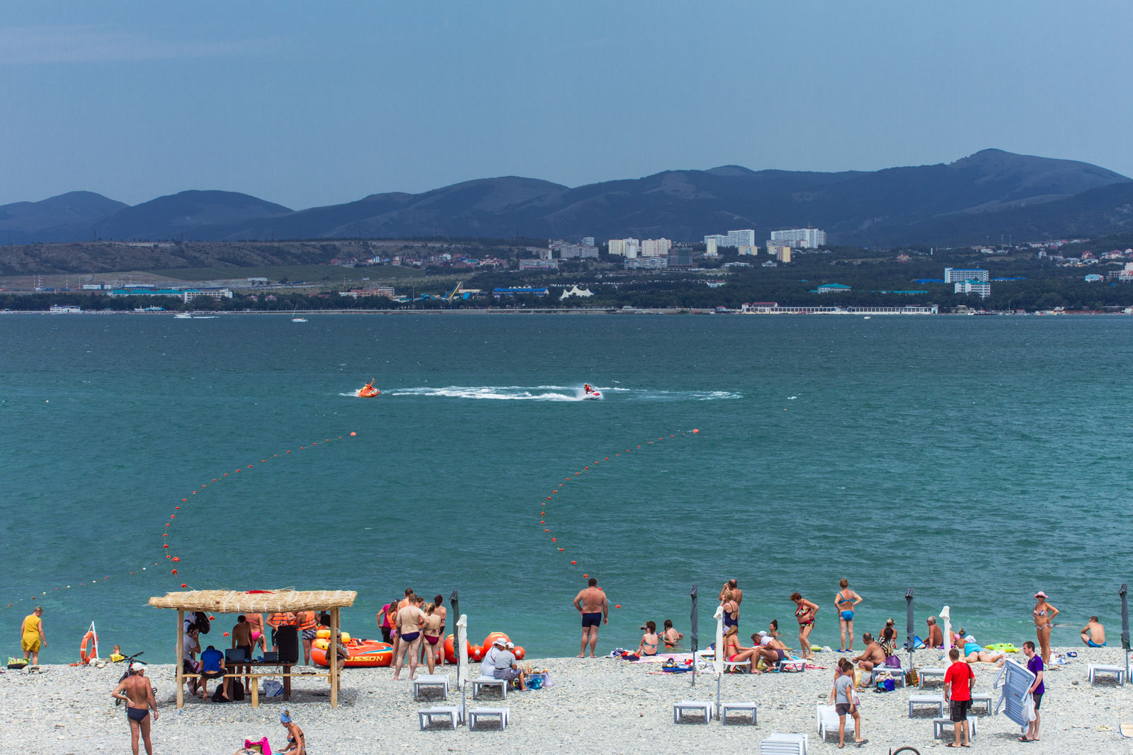 Главное преимущество Центрального пляжа в том, что он покрыт песком. И лишь местами здесь проглядывает естественный для всего побережья грунт – среднего размера галька. Вход в воду пологий, и глубина нарастает медленно. Такие условия особенно хороши для купания с маленькими детьми.