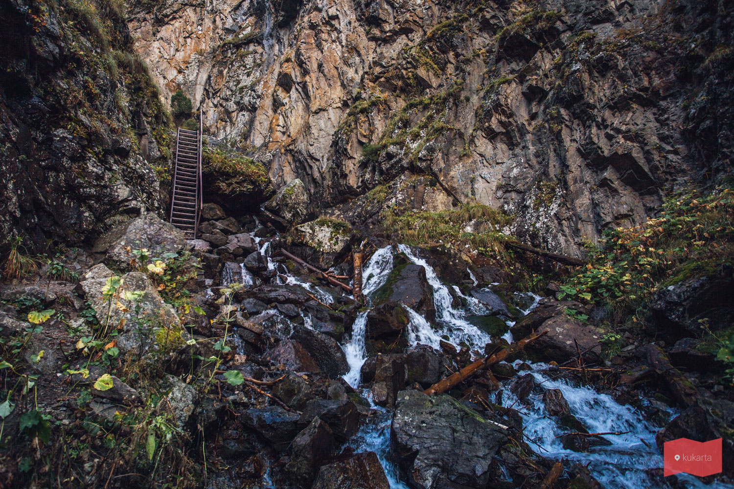Водопад совсем маленький — всего 5 метров в высоту, но при этом очень мощный и полноводный. Место довольно симпатичное, не такое красивое, как стоянка на реке Уллу-Муруджу (бесплатная кстати), но раз-два прогуляться можно. Идеально подойдет тем, кто не любит долгих походов.