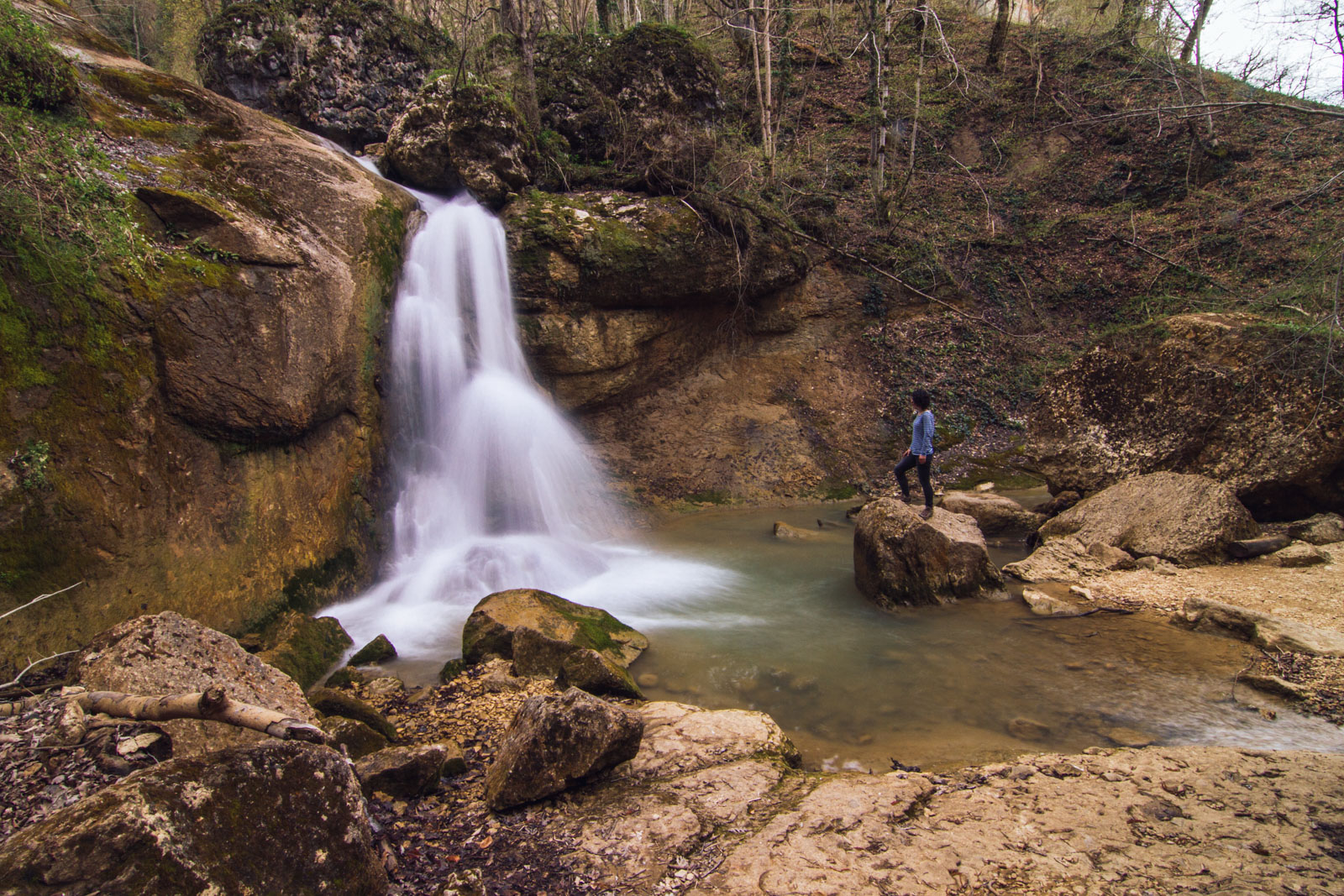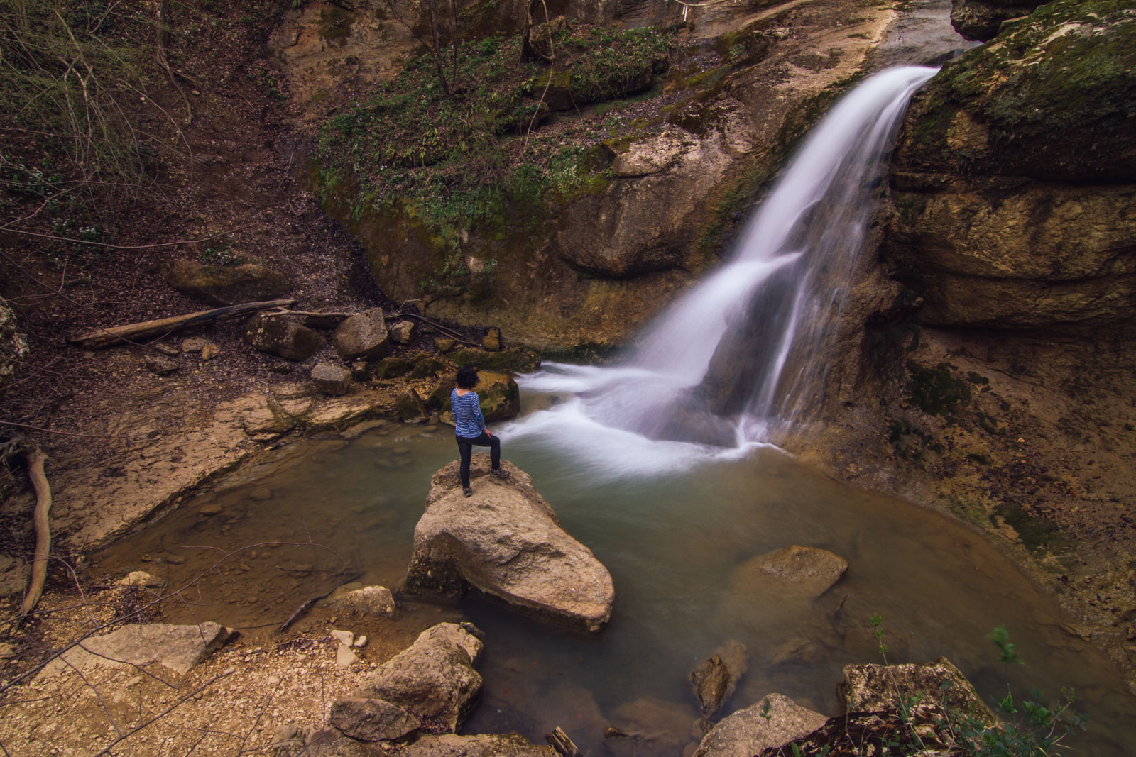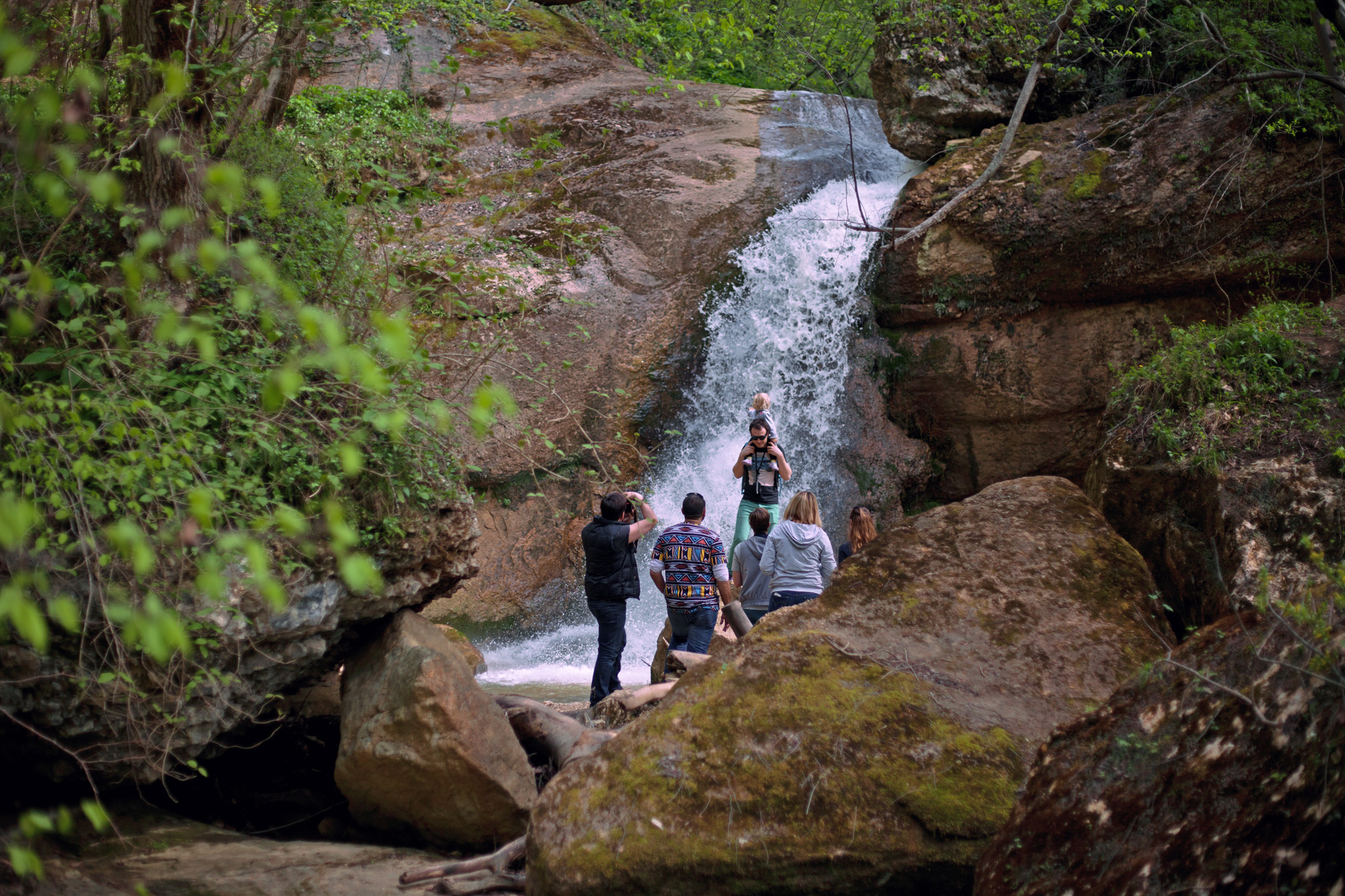 Путник, следующий далее по реке, приблизится к трем восхитительным водопадам, после которых открывается вид на горнолесной массив с большим количеством скал и огромных камней. По обе стороны русла реки расположены гроты, в которых и до сих пор можно отыскать орудия труда, костяные предметы.