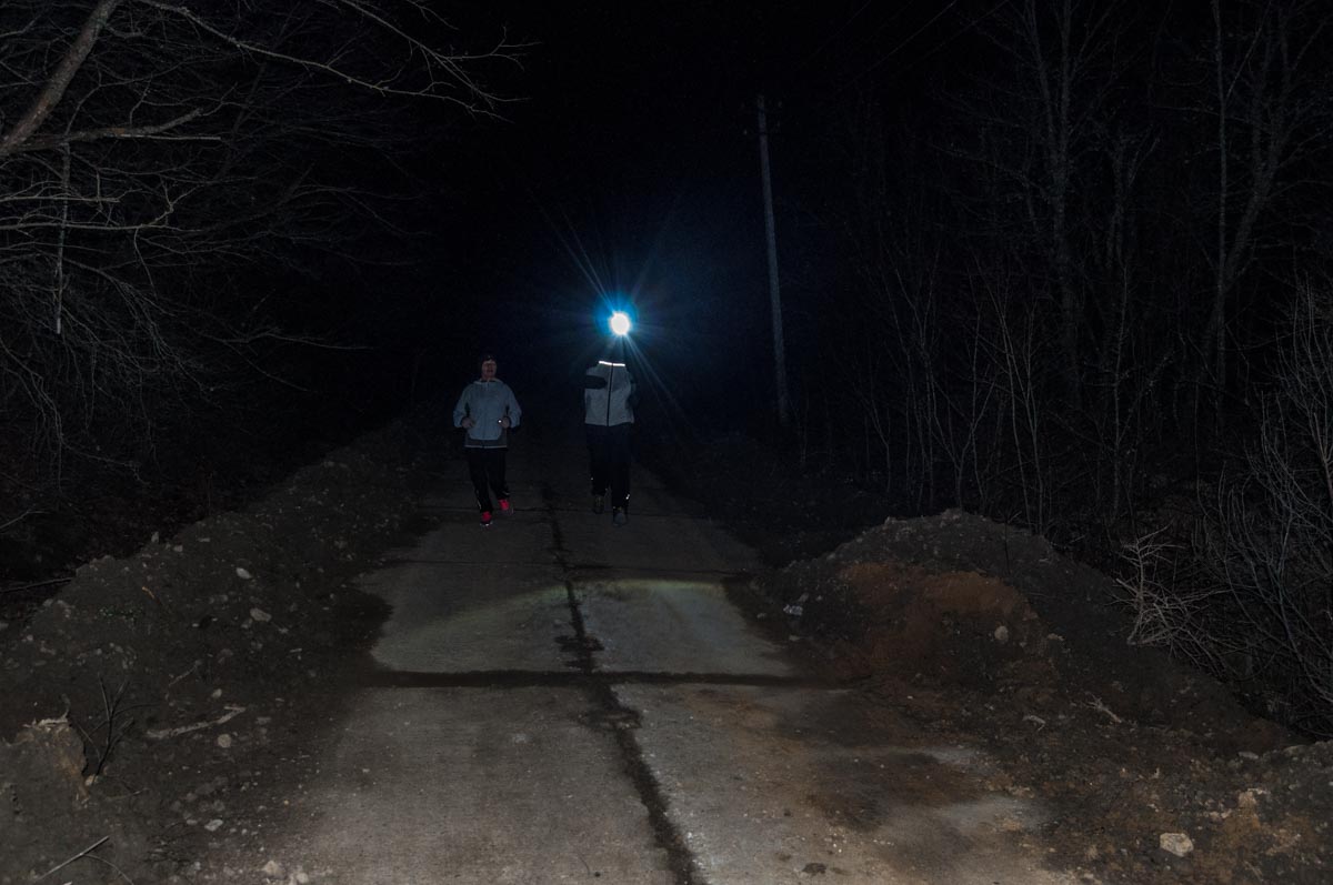 Февральский вечер. Люди после работы спешат домой к телевизорам и компьютерам, чтобы уютно устроится в кресле или на диване, насладиться чашкой горячего чая и погрузиться в бесконечную паутину интернета. А есть и другие, кто ждет вечера, чтобы, покинув Краснодар, проехать 70 км, одеть фонарик на лоб, кроссовки и, не смотря на погоду, пробежаться на вершину горы Собер-Баш.