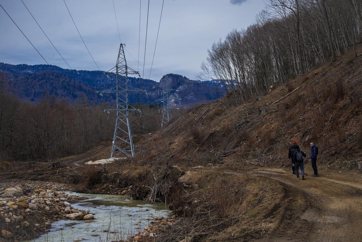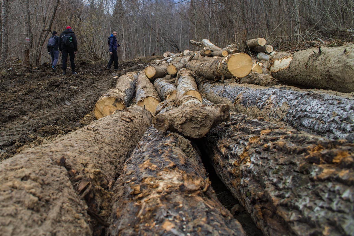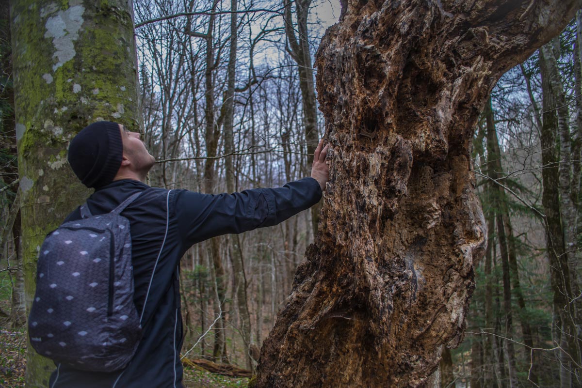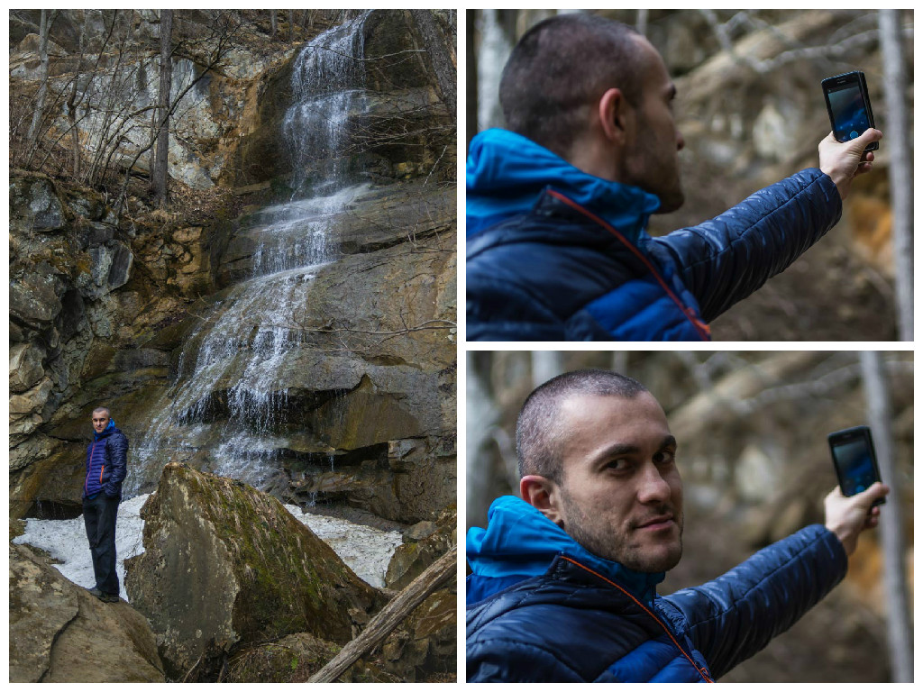 Естественно, нам сразу захотелось его найти. Забив указанные координаты, мы отправились на поиски водопада и тайника. Сперва маршрут идентичен тому, что ведет к водопадам Кутанки. Начинается он сразу возле горы Монах, на въезде в Хамышки и идет вдоль реки Бзыхи. Начинать движение можно как по левому, так и по правому орографическому берегу реки (если смотреть вниз по течению, то по правую руку от вас будет правый берег, а по левую – левый). Если вы выберете правый, то в какой-то момент придется переправиться на другой берег. Автомобильная дорога для вездеходов упрется в брод, справа вы увидите мостик, а слева – упавшее бревно, которое тоже может выполнить функцию моста.