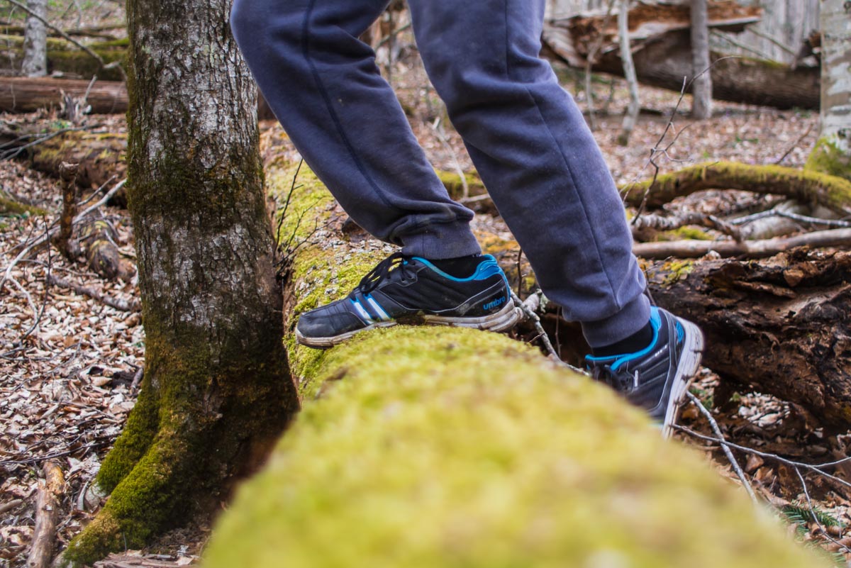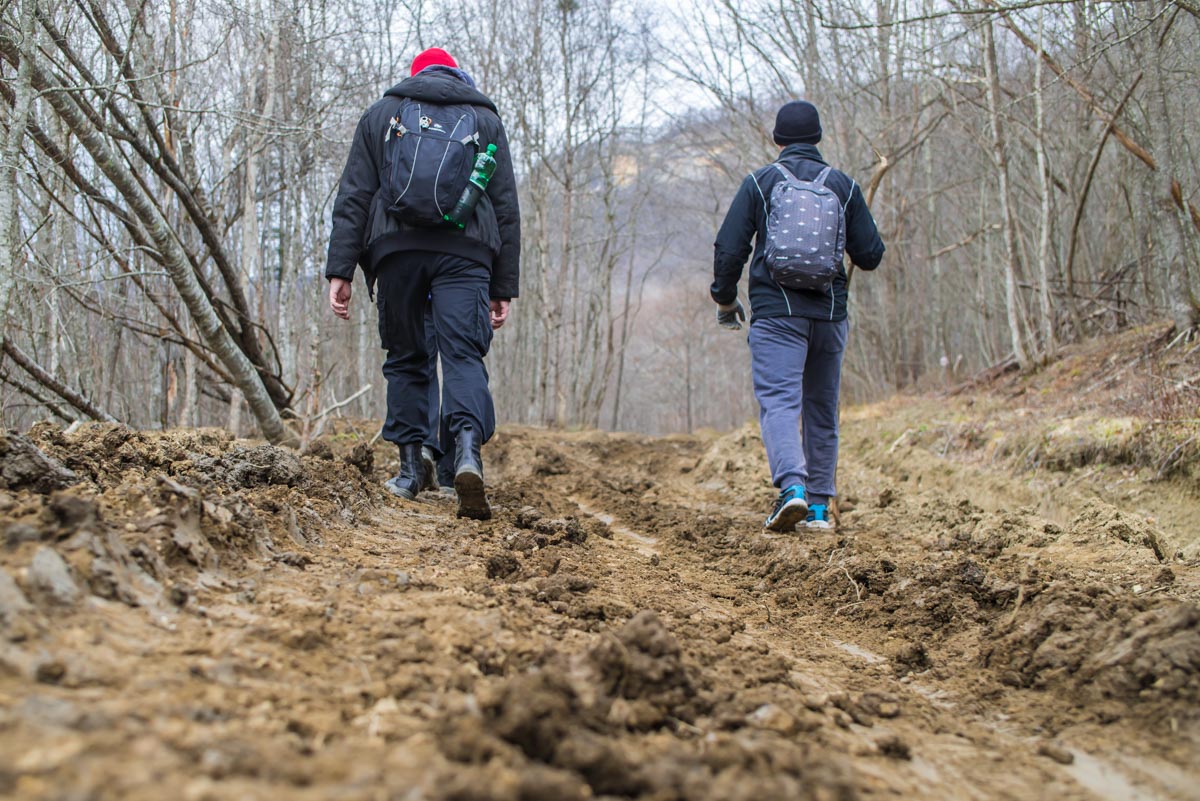 Путь в одну сторону примерно 3 км, на его прохождение мы потратили около 3 часов. Низкая скорость связана с тем, что ломиться напрямую через лес не очень удобно. Для похода подойдет любая удобная обувь: кроссовки или ботинки. Переходить реку практически не придется, поэтому сапоги лучше оставьте дома.