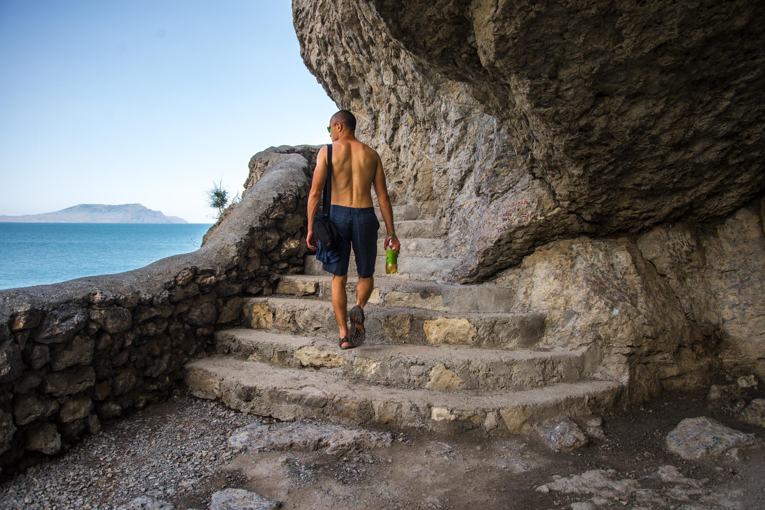 По тропе Голицына, которая начинается на западной окраине поселка Новый Свет, недалеко от центральной набережной.