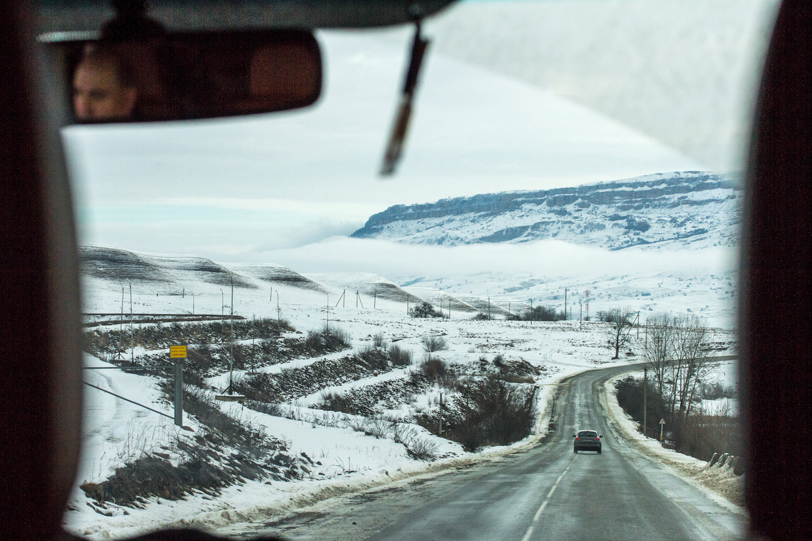 Из Краснодара до горнолыжного курорта «Архыз» – 380 км пути. Корреспондент сайта «Кукарта.ру», Евгений Маханько проехал по этому маршруту 31 января и назад в Краснодар 1 февраля и отснял прелести дороги. Сразу стоит отметить, что первые красоты на горизонте появляются лишь около поселка Мостовской, но горы лишь видны на горизонте. Возле Псебая начинается уже красота, постепенно переходящая в шикарнейшую картинку за стеклом.